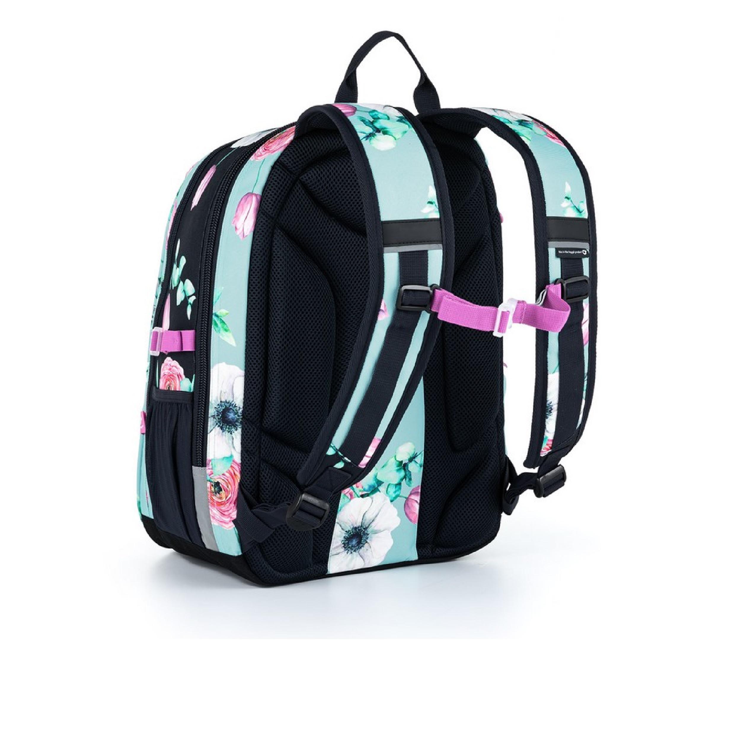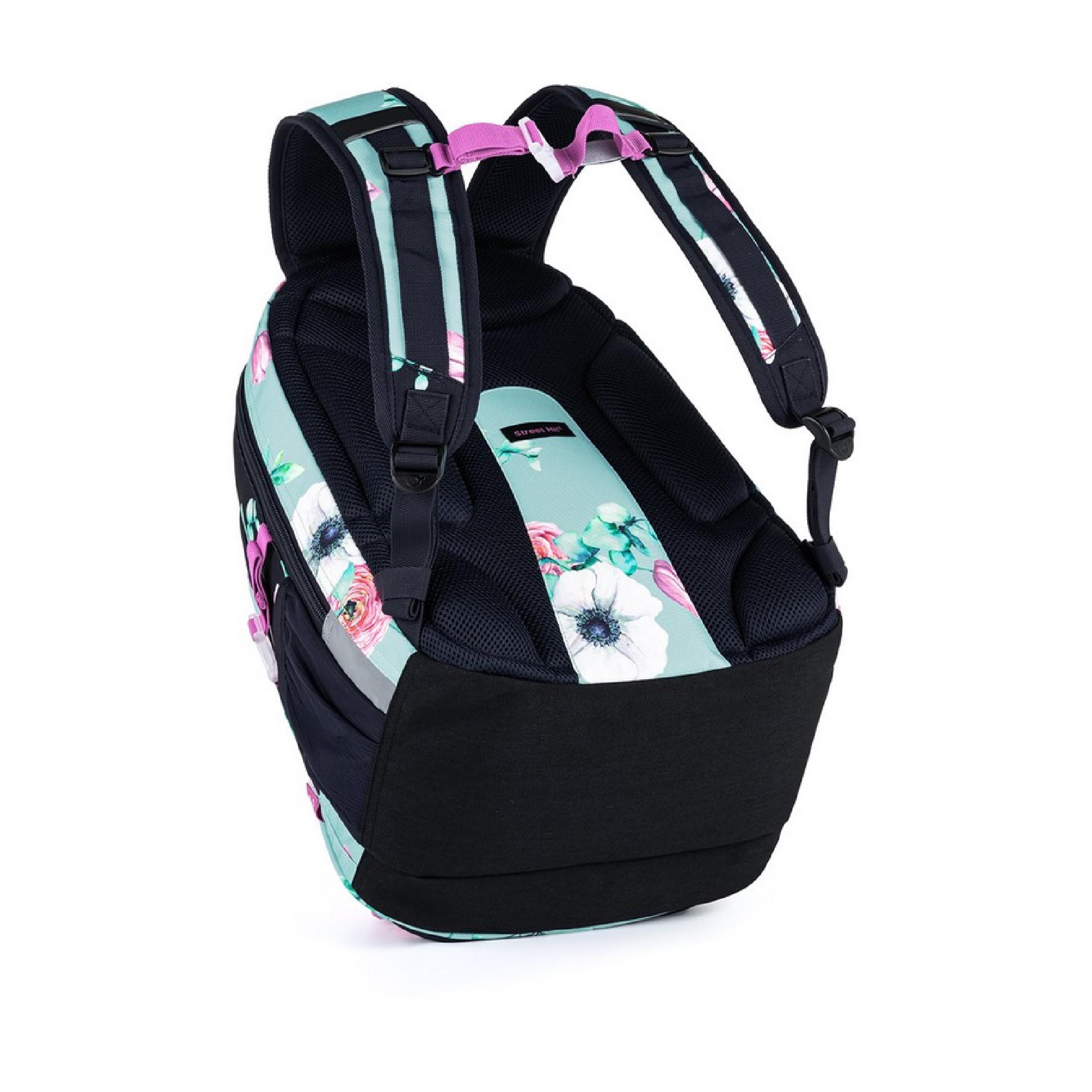 Záda batohu jsou měkce polstrovaná, anatomicky tvarovaná, vyztužená lehkou hliníkovou výztuhou. Batoh se bude pohodlně nosit i díky ergonomicky tvarovaným, polstrovaným ramenním popruhům s výškově nastavitelnou hrudní přezkou.
