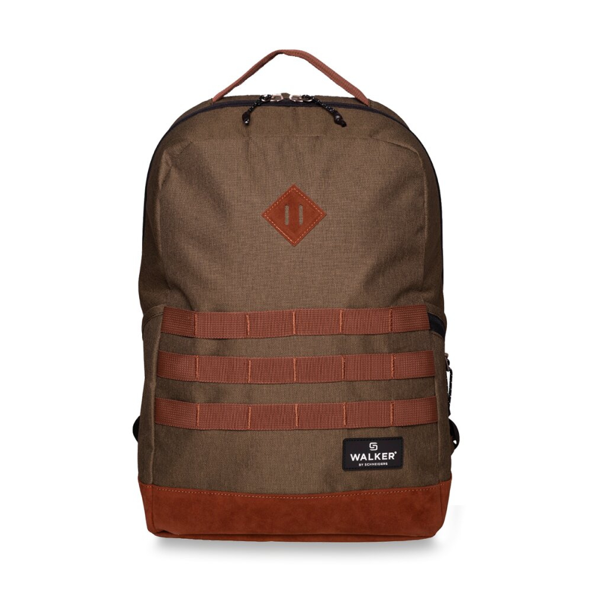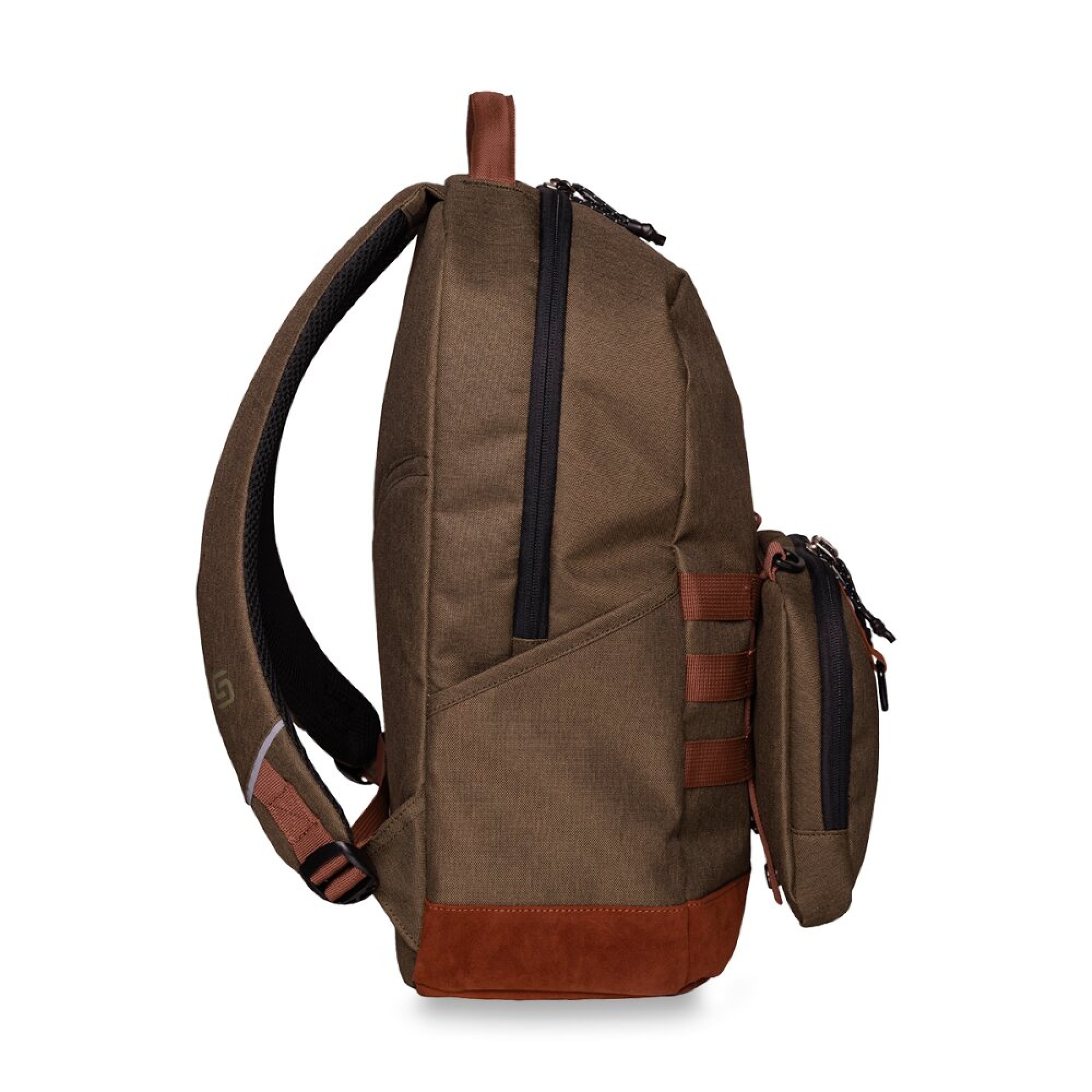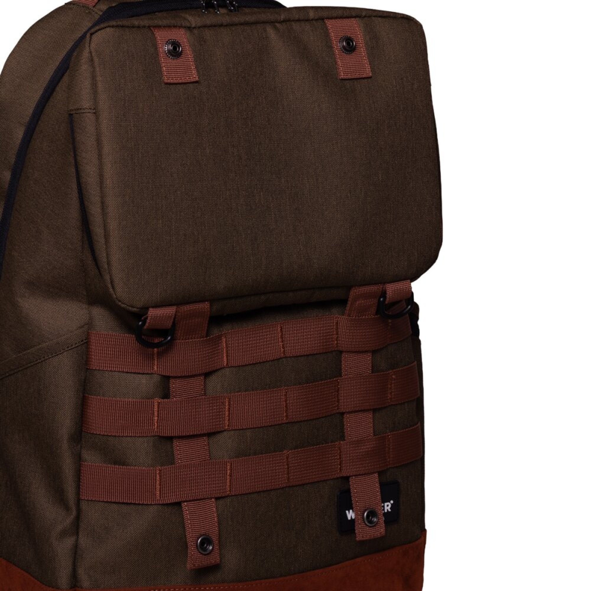 spodní část batohu potažena materiálem ve vzhledu broušené kůže – odolný proti nečistotám