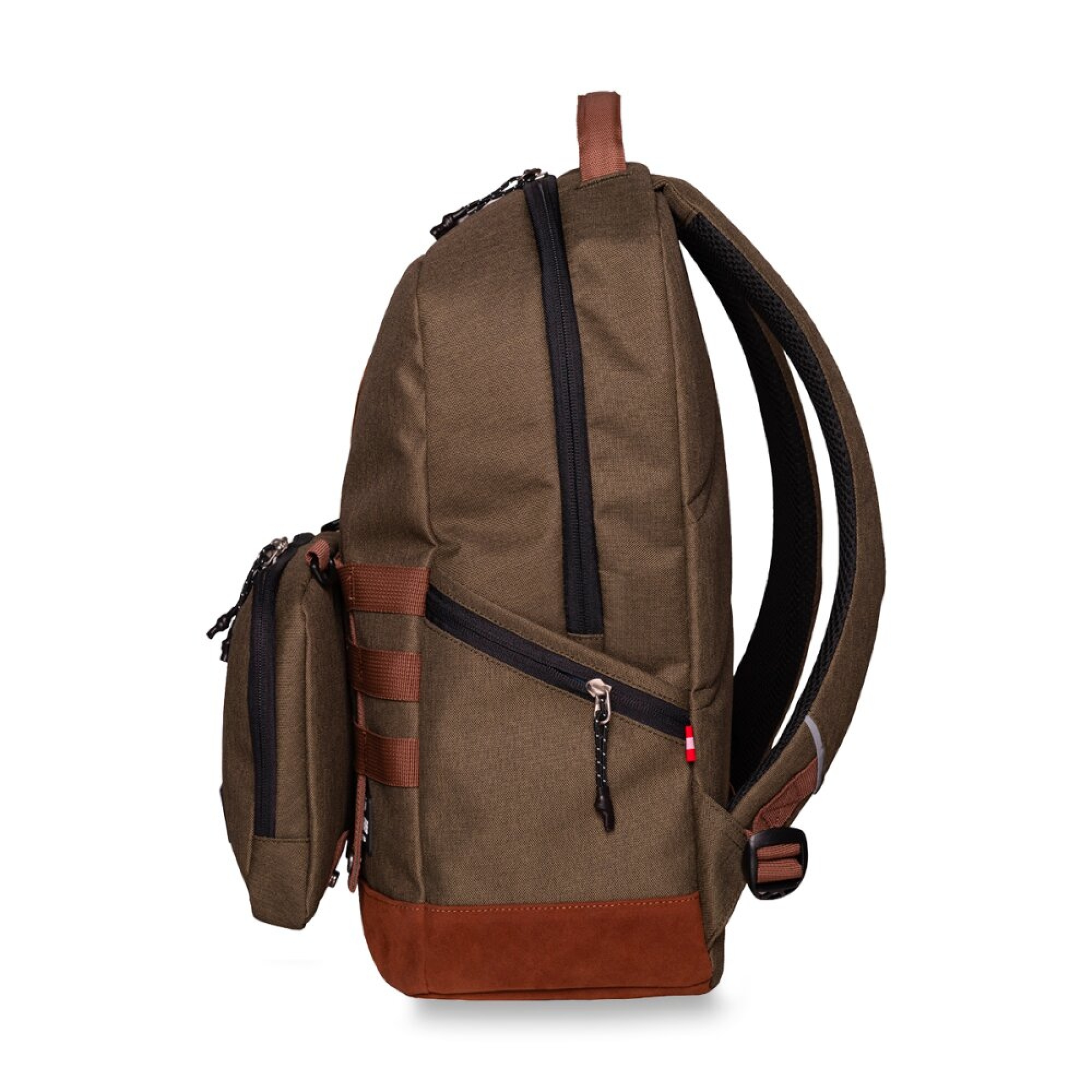 odnímatelná přední kapsa se zapínáním na zip a vnitřní kapsou na zip s organizérem