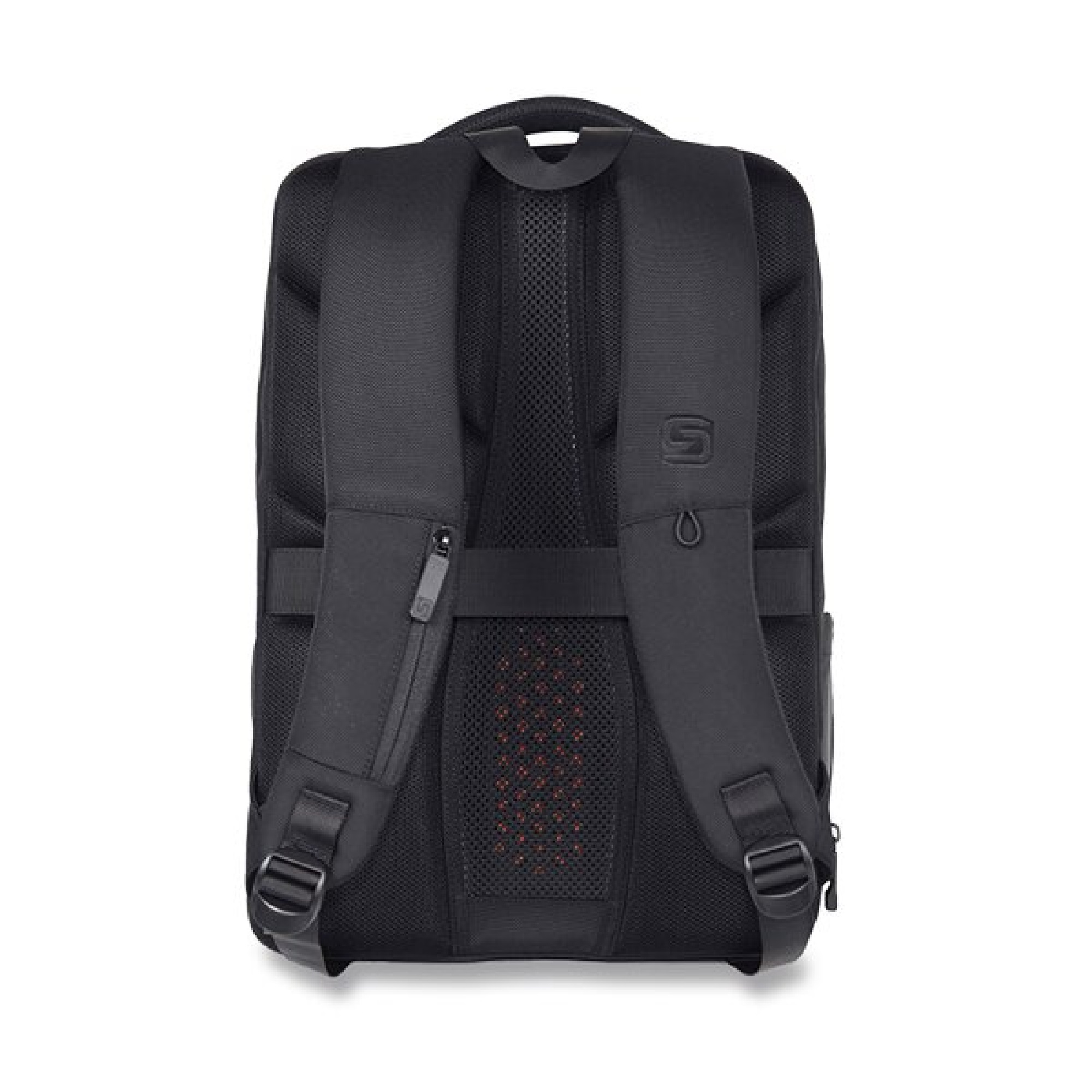 anatomicky tvarované a výškově nastavitelné ramenní popruhy, včetně skryté malé kapsičky na zip s RFID ochranou (zablokuje příchozí bezdrátové komunikace a zamezí nežádoucímu čtení dat z kreditních karet)