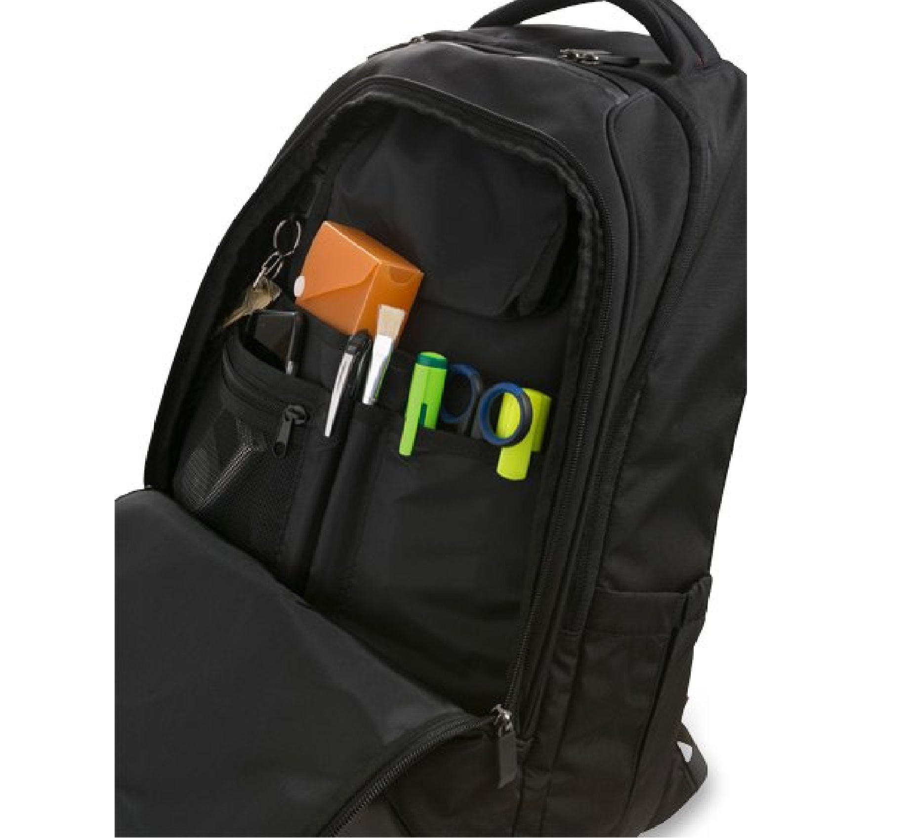 hlavní komora s prostorem pro notebook do velikosti 15“, kapsou na tablet a kapsičkou na zip