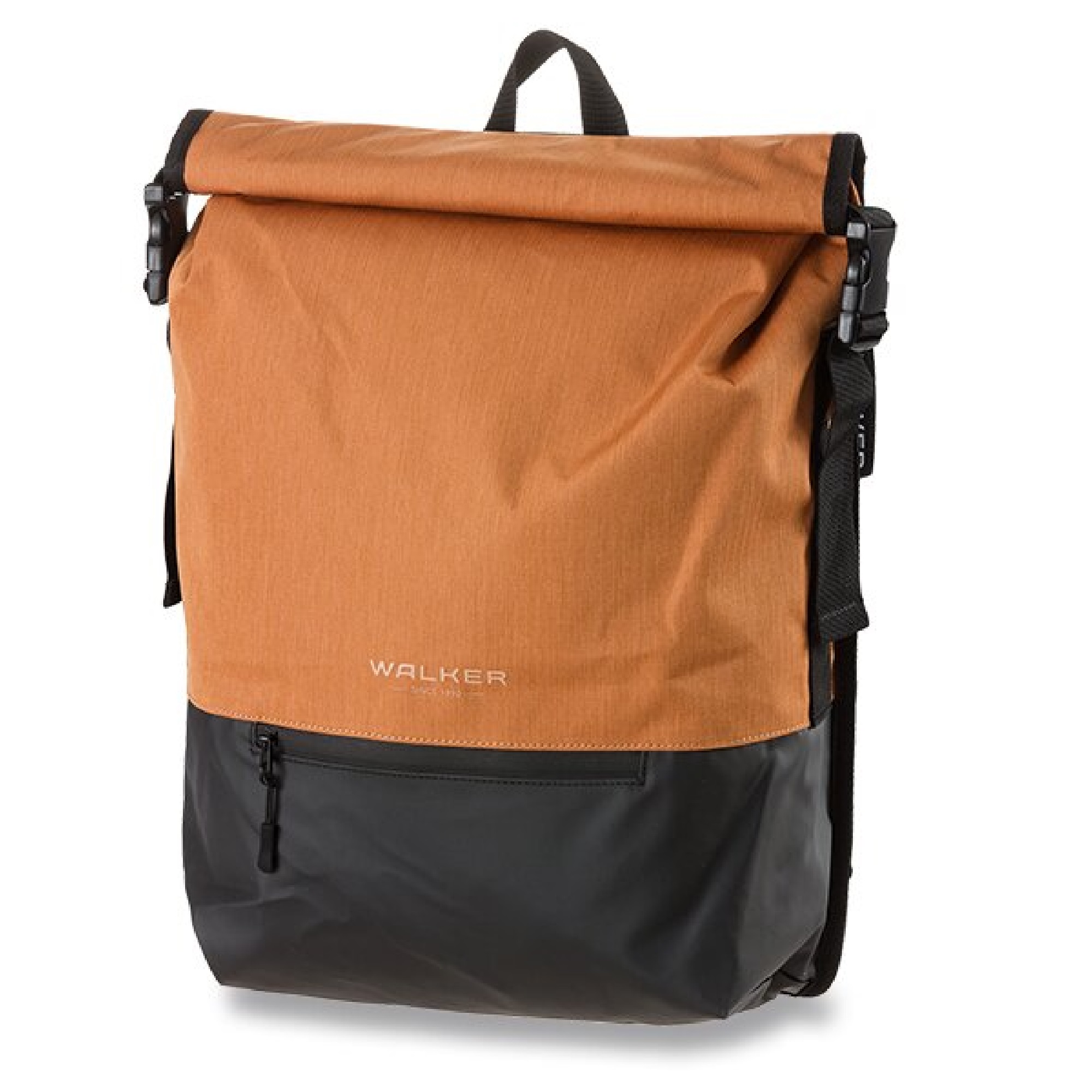 uzavíratelná na zip a zároveň s rolovacím uzavíráním na velké plastové přezky po stranách batohu
