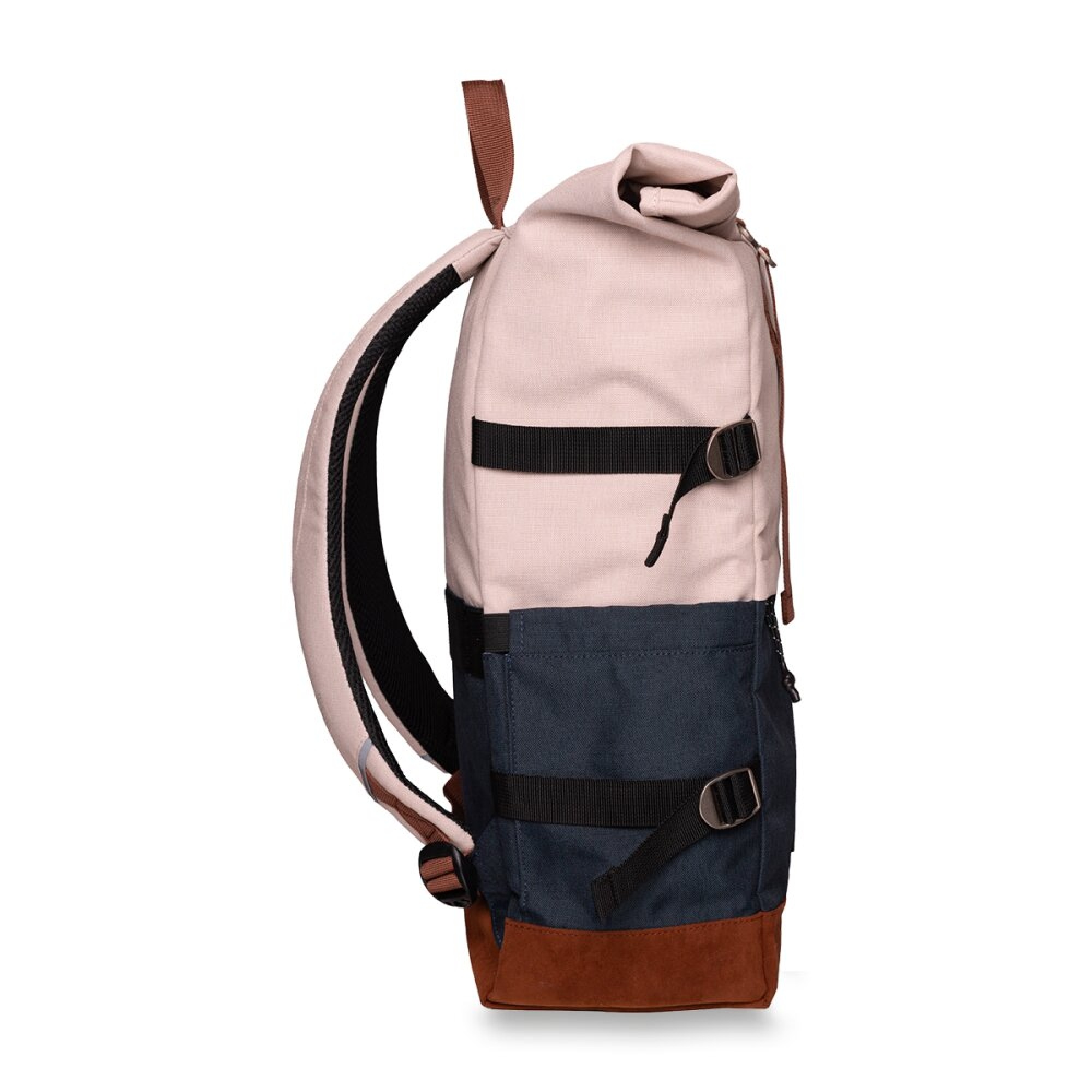 spodní část batohu potažena materiálem ve vzhledu broušené kůže – odolný proti nečistotám