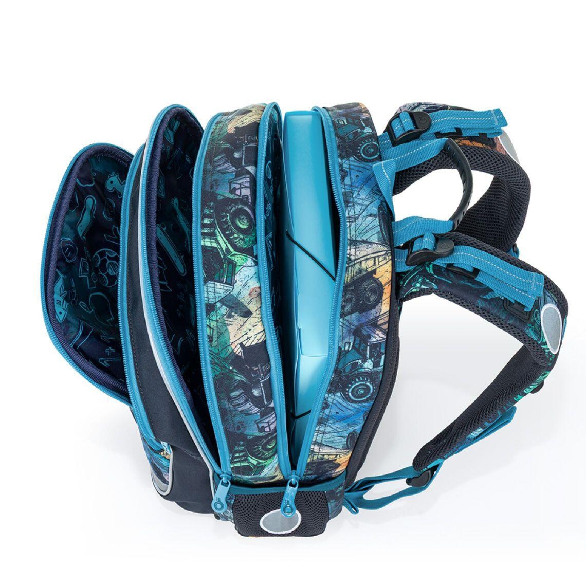 Do boční kapsy se pohodlně vejde lahev ZIVA o objemu 0,5 litru. Batoh je vybaven reflexními prvky na čele, bocích i ramenních popruzích, které zvyšují bezpečnost dítěte na cestě do školy.