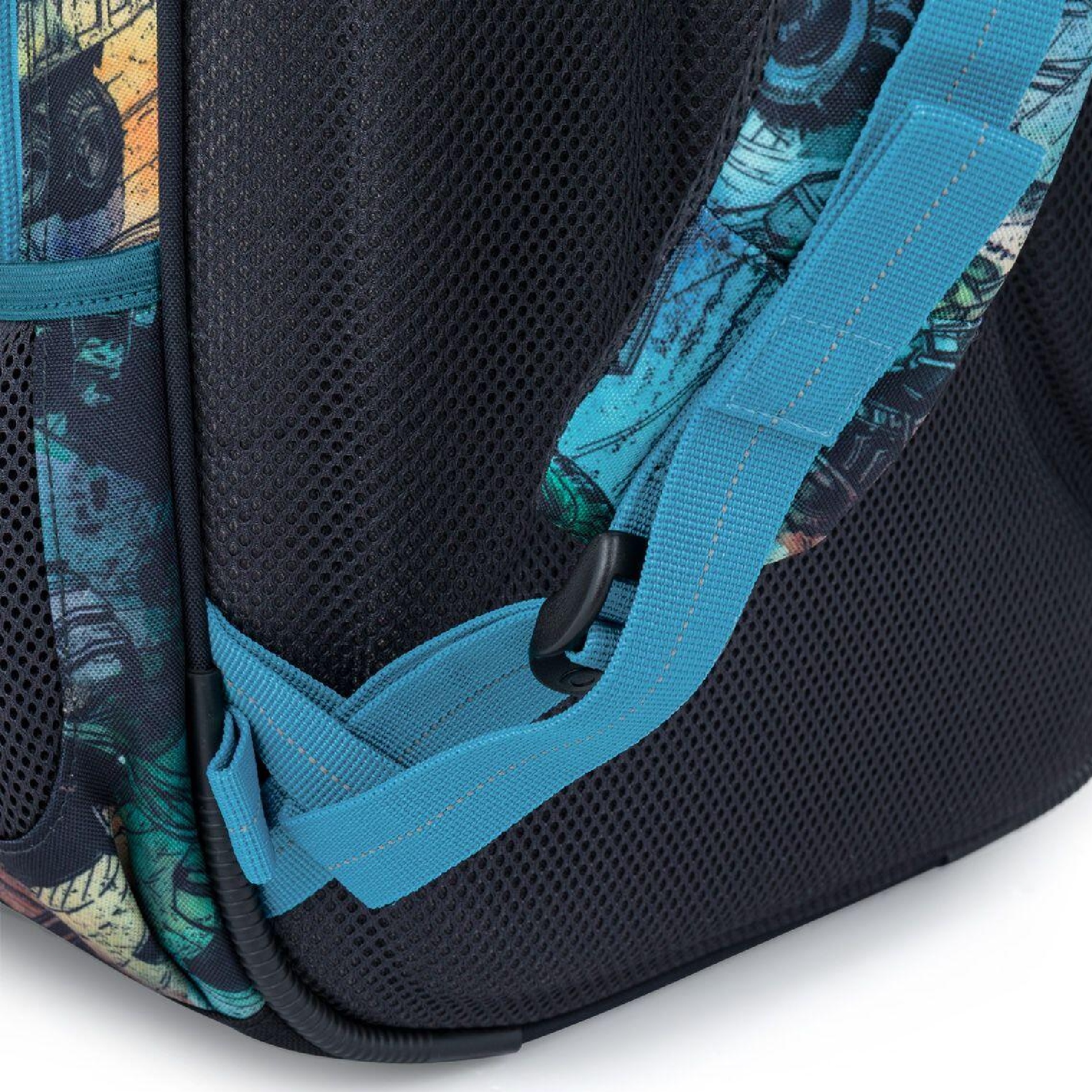 Spodní část batohu je vyrobená z odolného materiálu TOPDURA, který chrání batoh před oděrem a pomáhá mu držet tvar i při každodenním školním používání.