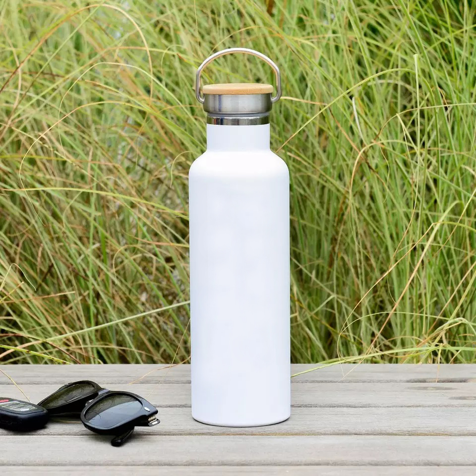 Popis:Cestovní bílá termoska s bambusovým víčkem a poutkem. Elegantní cestovní bílá termoska pro potisk sublimací se šroubovacím bambusovým víčkem a praktickým sklopným nerezovým poutkem. Samotné víčko má několik předností - silikonové těsnění, šroubovací uzávěr z nerezové oceli a samotný bambusovvý vršek s antibakteriálním povrchem. Do bambusu lze gravírovat nebo laserovat. Lze potisknout pomocí laserové tiskárny a fólie FOREVER Multitrans PLUS.Specifikace:- Dvouplášťové provedení po udržení teploty nápoje až po dobu 6 - 12 hodin- Vnitřek termosky vyroben z kvalitní nerezové oceli 304- Objem: 500 ml- Průměr: 73 mm- Výška: 220 mm- Plocha tisku: 165 x 200 mmAplikační parametry:- Teplota: 140oC- Čas: 100 vteřin