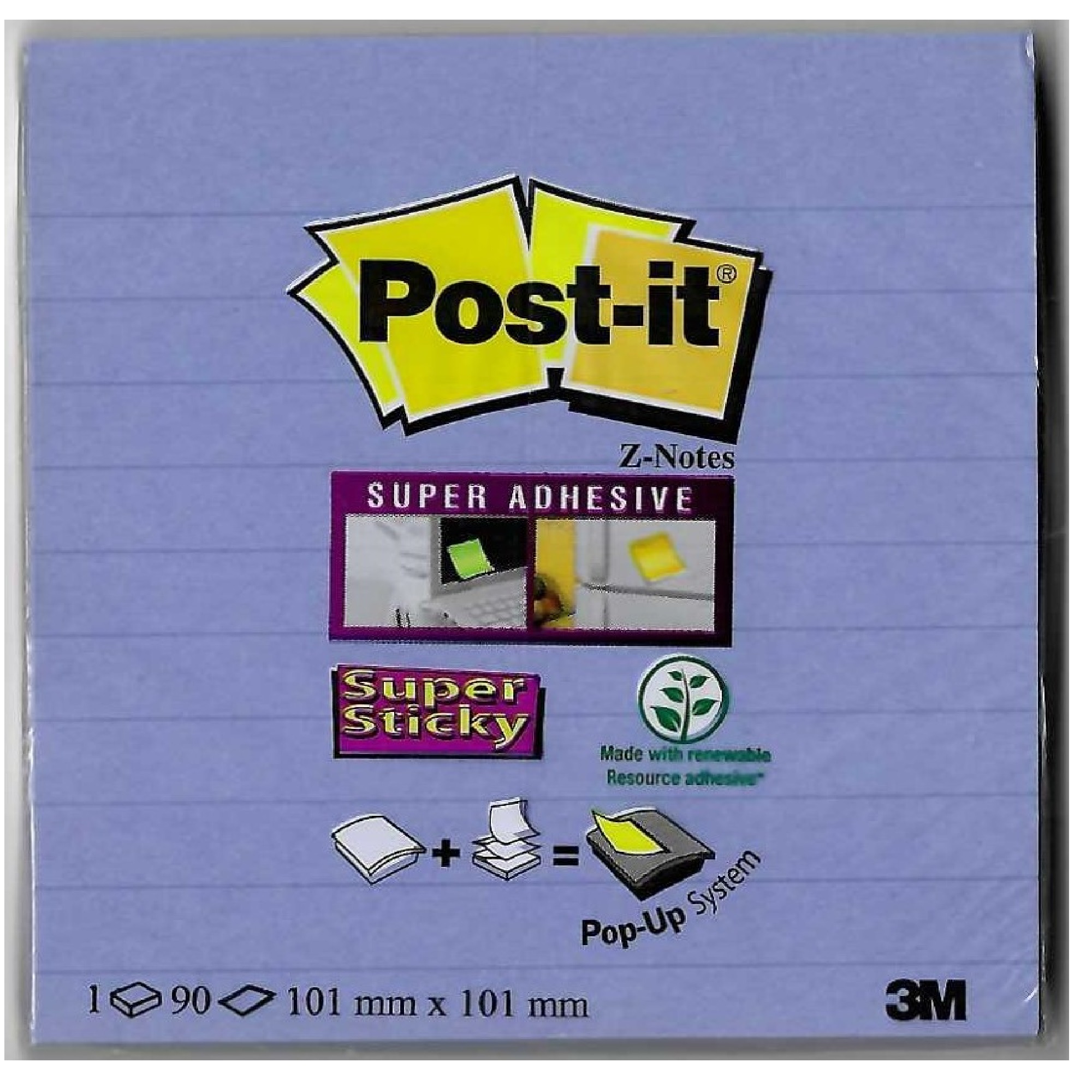 Bloček samolepící 101x101mm Post-it "Z" Super Sticky linkovaný modrý 90 lístků
