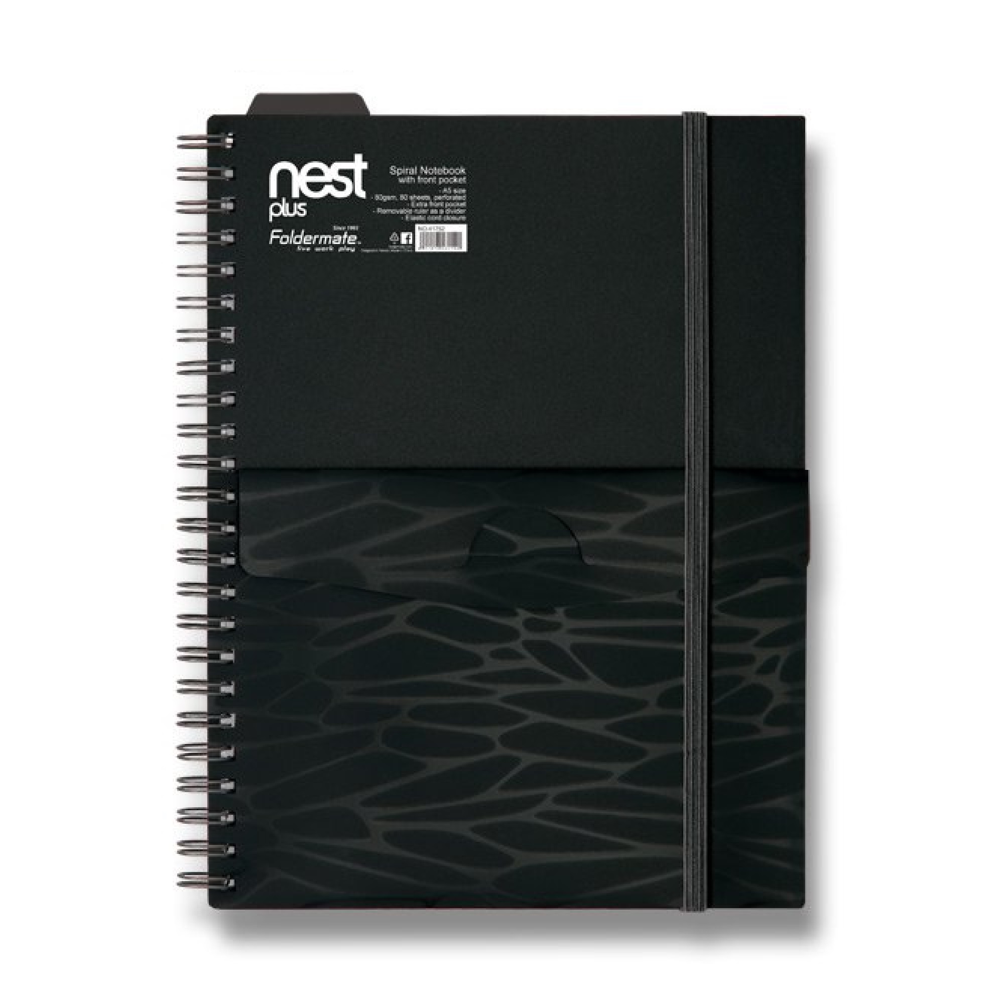 Blok spirála A5 linka 80 listů Nest Foldermate s kapsou černý