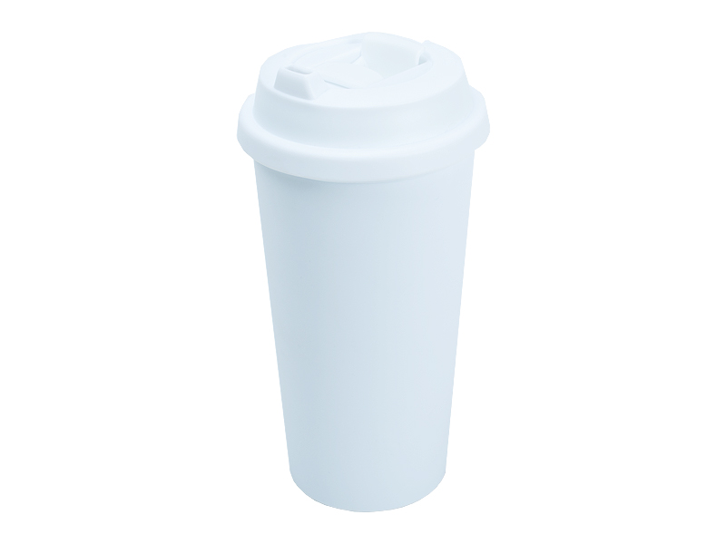 Cestovní polymerový dvouplášťový hrnek s bílým víčkem