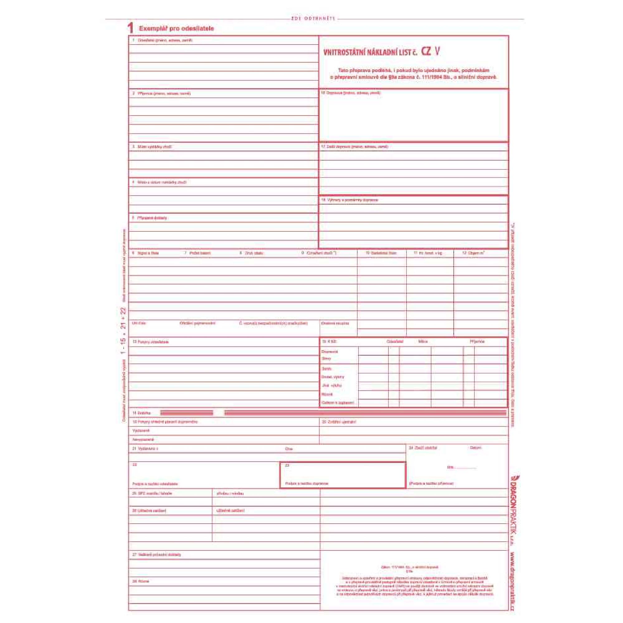 • detail CMR vnitrostátní doprava 3 listy NCR /O