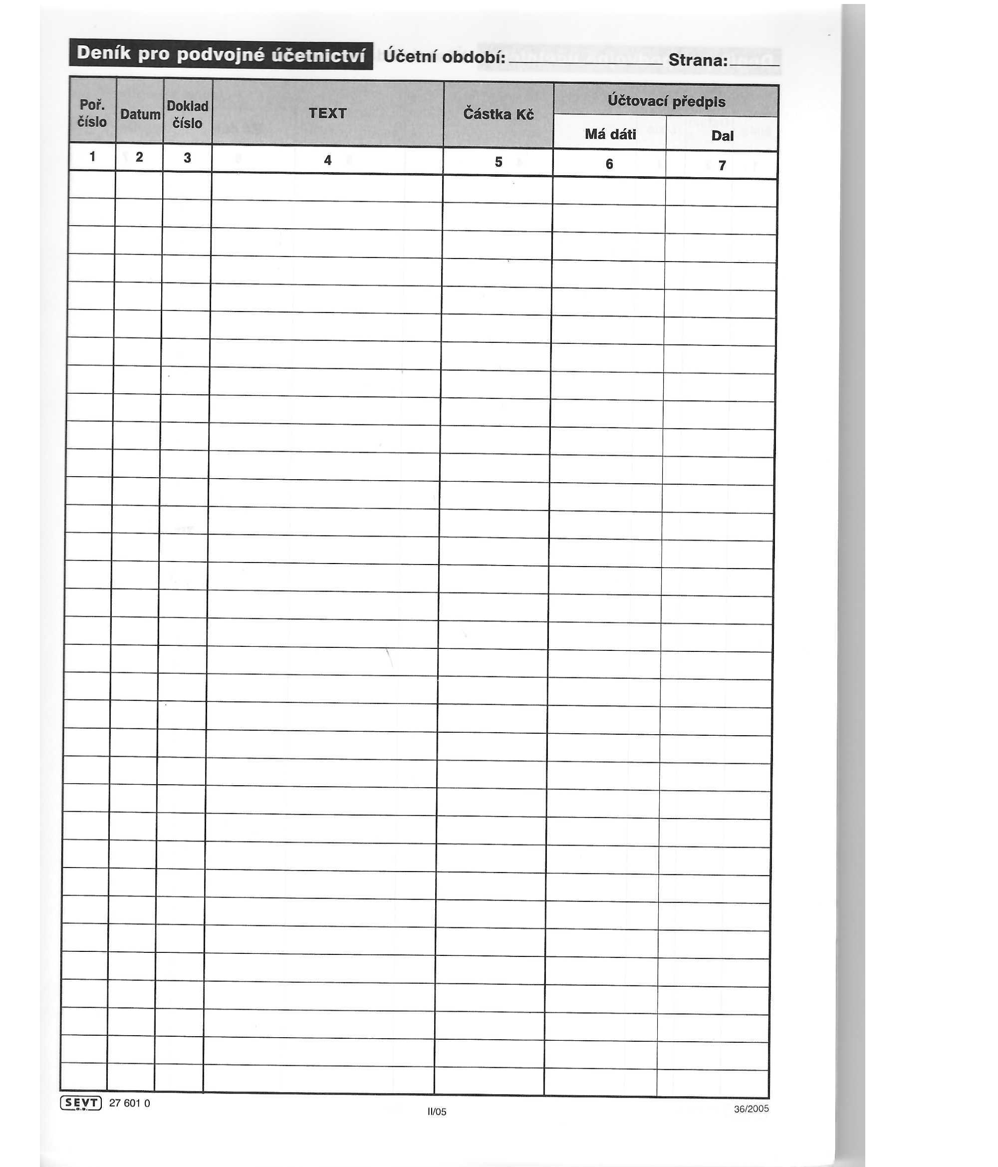 • detail Deník pro podvojné účetnictví Sevt