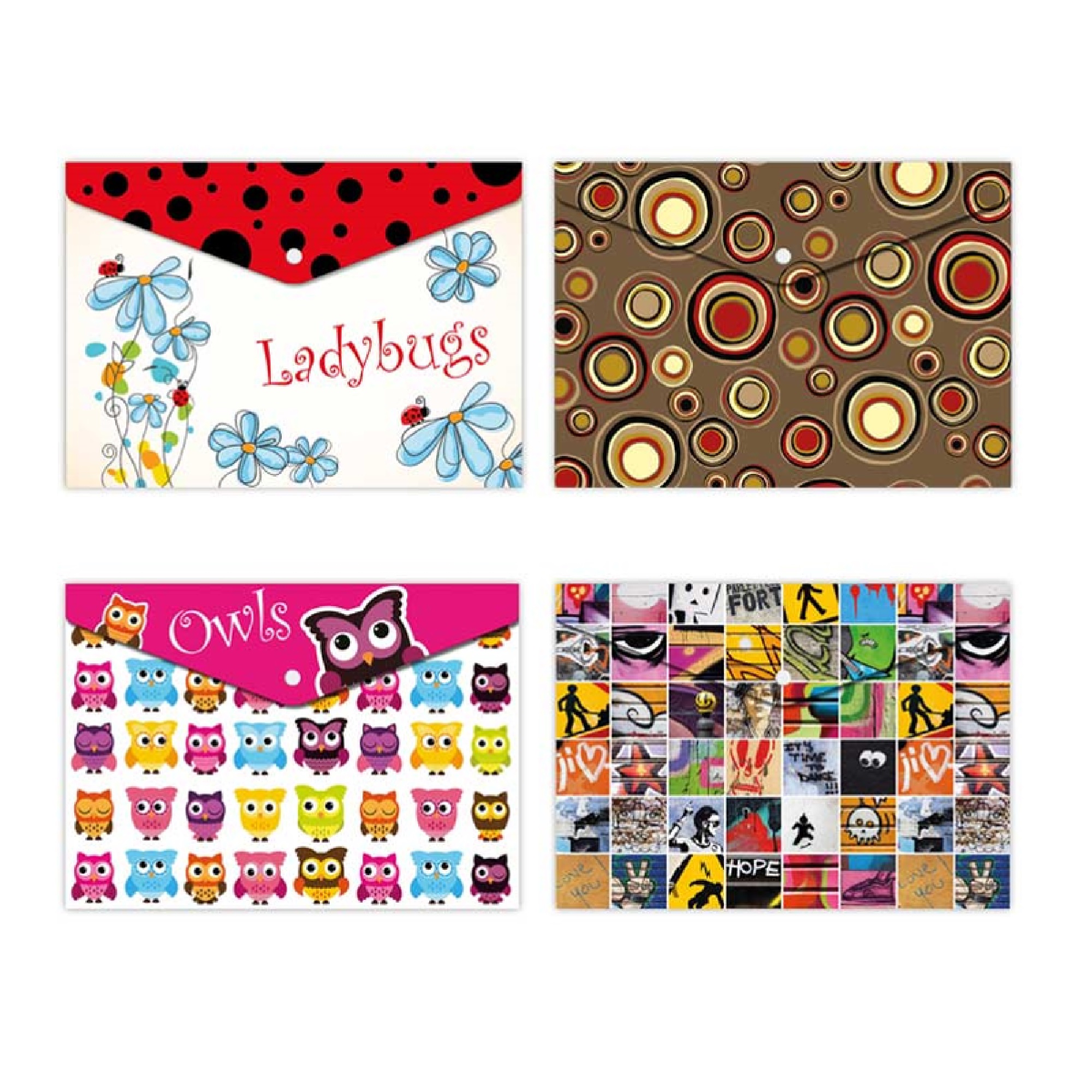 Popis:PP složka s drukem o velikosti A4. Složka slouží jako pomocník pro třídění a ukládání dokumentů, takže je budete mít vždy pohromadě. POTISK: berušky, sovy, kruhy, street, SÍLA MATERIÁLU: 0,21 mm.