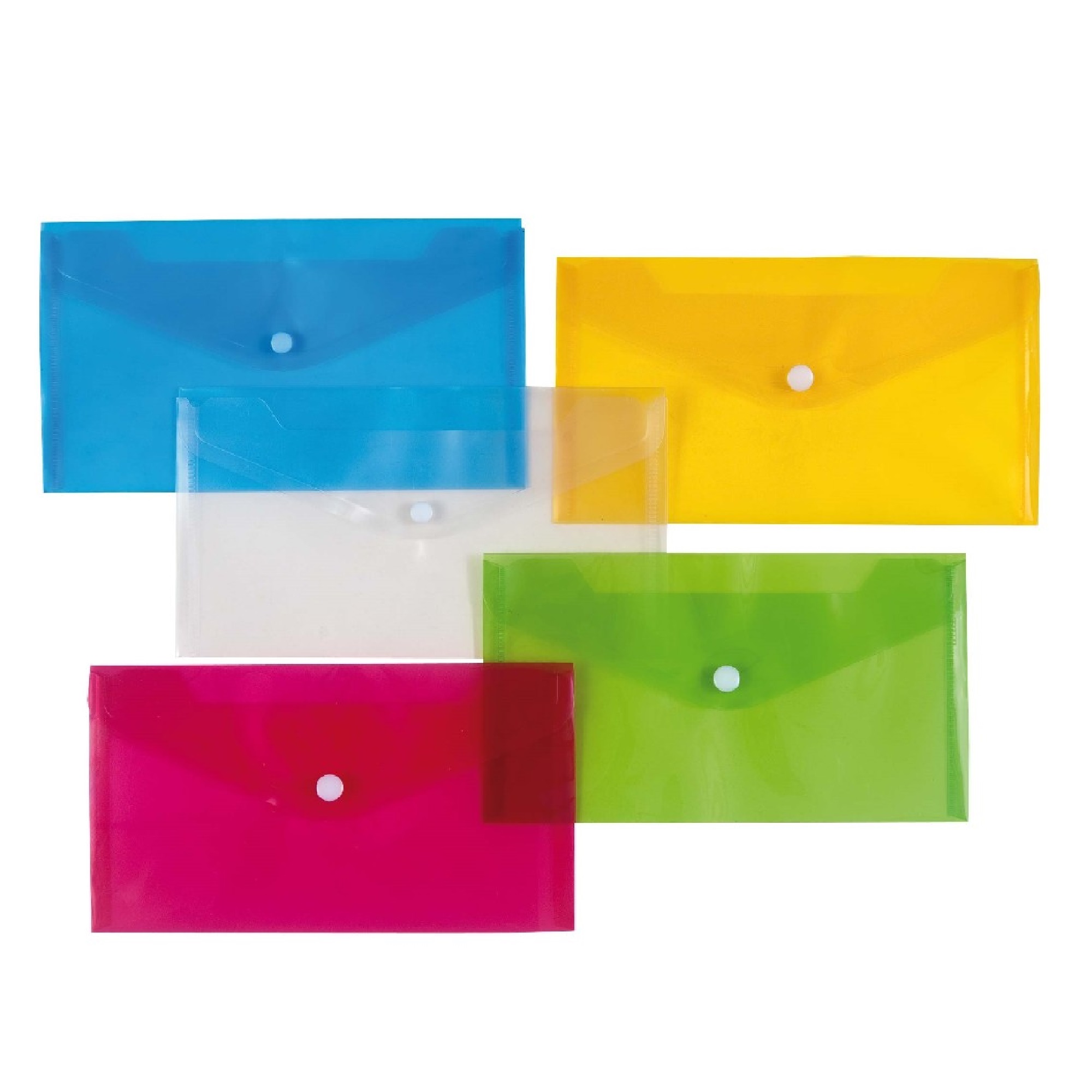 Popis:Spisové desky DL, materiál polypropylen, barevné - průhledné, zavírání jedním drukem, mix barev.