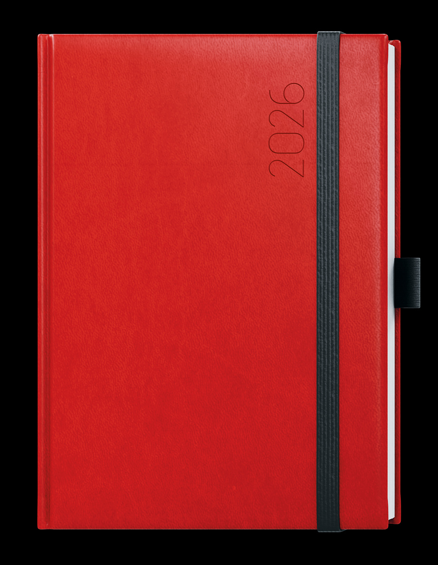 Popis:Denní diář v červené barvě z jemné vivelly ve formátu A5 s praktickou gumičkou a poutkem na propisku. Má velký prostor pro poznámky a plánování.