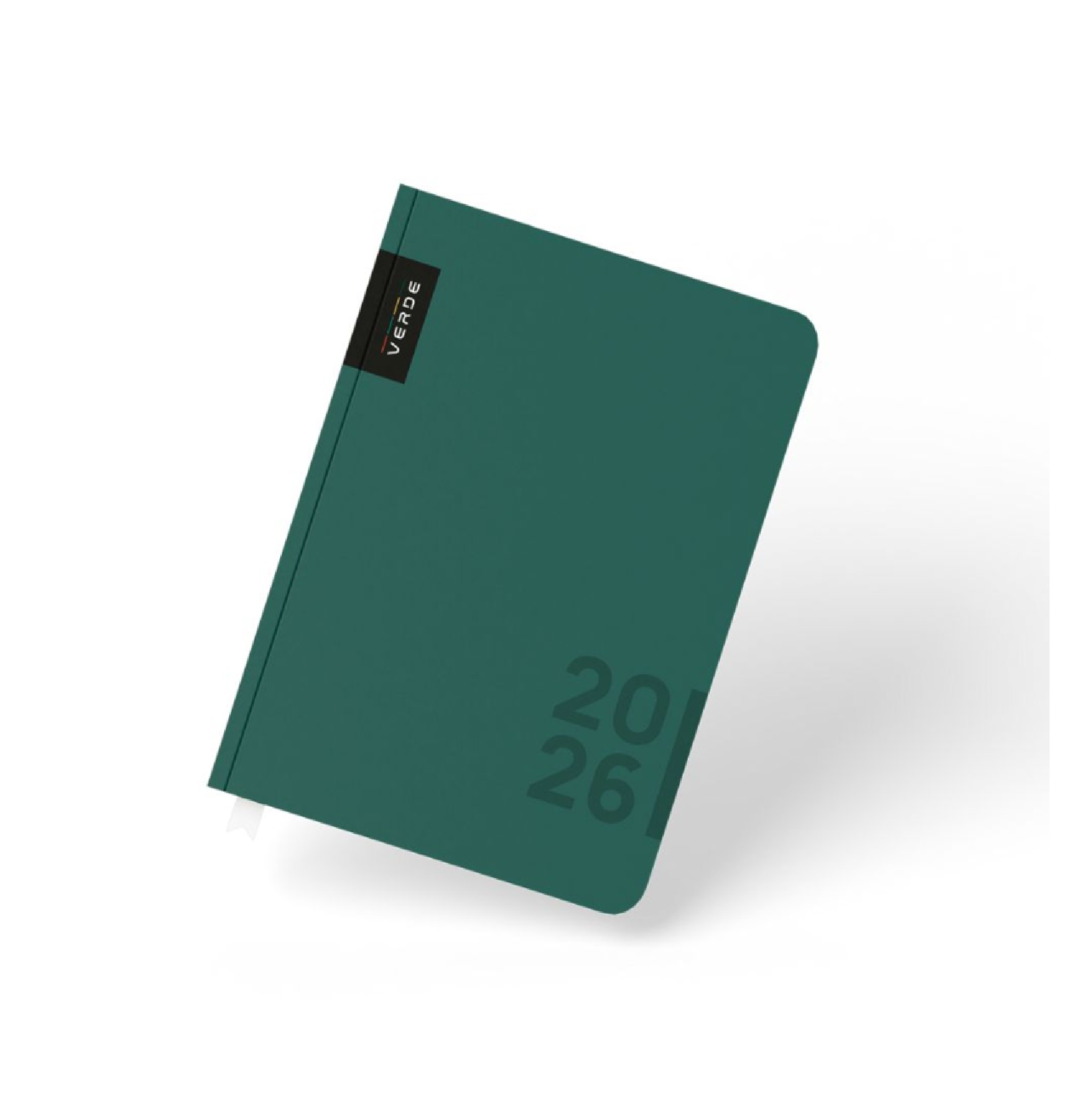 Diář A5 s denním rozvrhem z kolekce VERDE obsahuje 352 stran a je ideální pro ty, kdo vyžadují podrobné denní plánování. Povrchová úprava Soft touch lamino mat s UV lakem zajišťuje diáři nejen elegantní vzhled, ale i odolnost proti opotřebení. Diář obsahuje mnoho praktických informačních stránek: osobní údaje, plánovací kalendář pro rok 2026, přehledný kalendář pro roky 2026/2027, daňový kalendář 2026, seznam křestních jmen a mezinárodních svátků, mezinárodní telefonní předvolby a důležitá telefonní čísla, prostor pro poznámky a plánovač dovolené. Kalendárium zahrnuje jména a státní svátky v češtině a slovenštině, dny a měsíce v pěti jazycích (čeština, slovenština, němčina, angličtina, ruština), počet dnů od začátku do konce roku, měsíční fáze a mapy České republiky, Slovenska a Evropské unie. Další vlastnosti jako kulaté rohy a perforace pro snadné odtrhávání stránek zvyšují uživatelský komfort a funkčnost diáře.