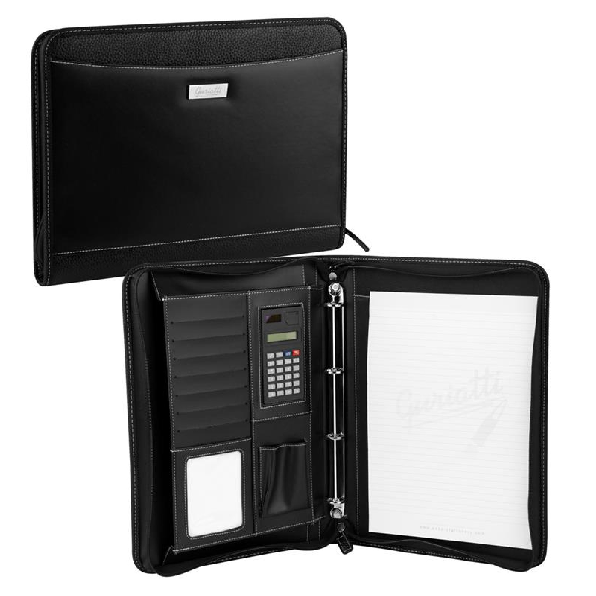 Konferenční desky s čtyřkroužkovou vazbou, kalkulačkou, poznámkovým blokem a kapsou na dokumenty.