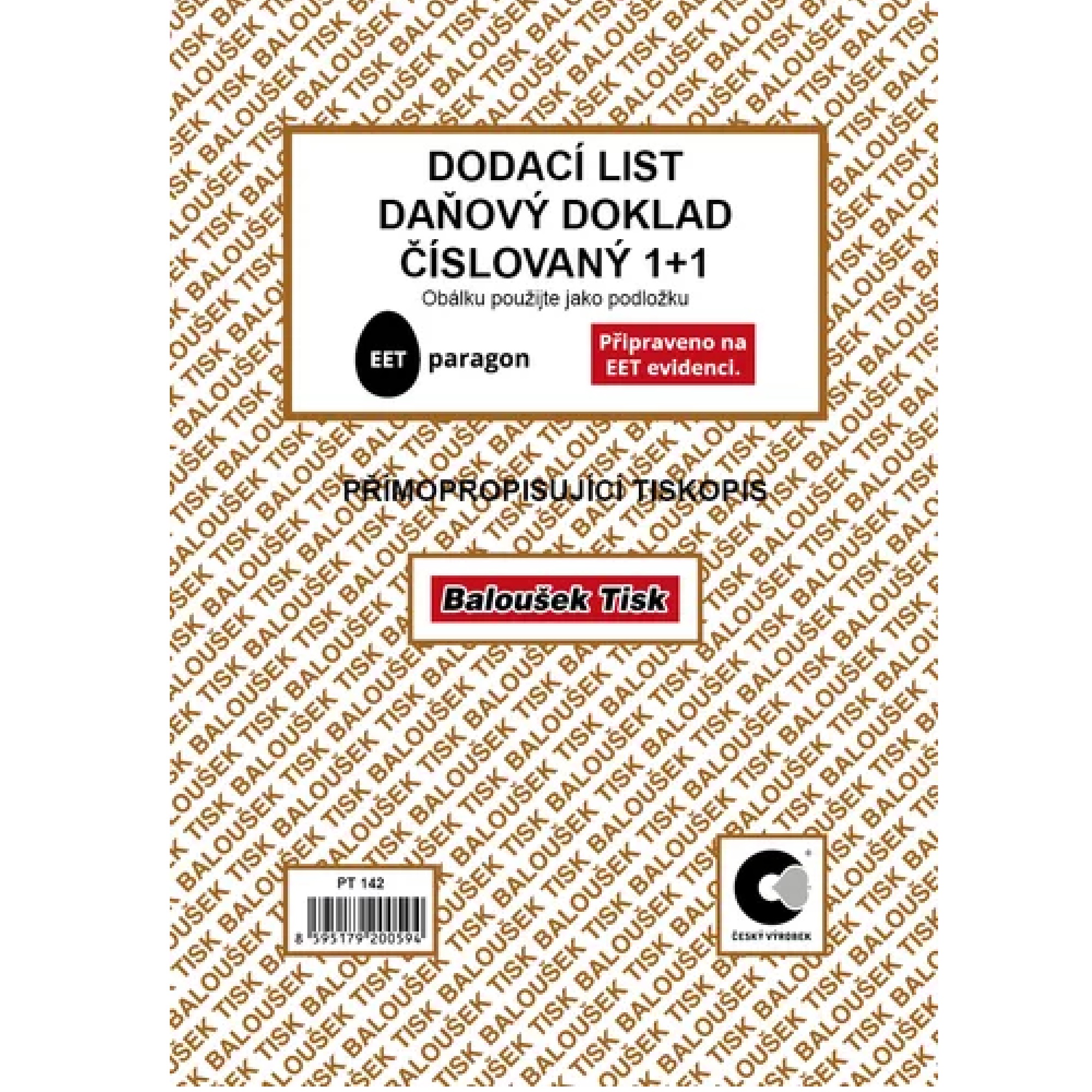 daňový doklad A5 samopropis číslovaný PT142?