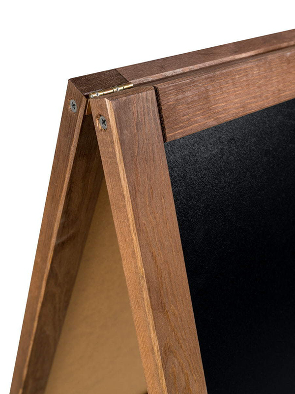 Popis:Dřevěný reklamní stojan Classic M 100 x 60 cm. Dřevěný reklamní stojan Classic M je praktické prezentační řešení vhodné pro restaurace, kavárny, obchody a další komerční prostory, kde chcete přehledně a esteticky prezentovat nabídku nebo informace. Tento model je vhodný především pro použití v interiéru.Hlavní vlastnosti produktu Praktický design: Stojan je vyroben z kvalitního dřeva a esteticky zapadá do různých typů interiérového prostředí. Psací plocha: Plocha má rozměr přibližně 53 × 66,5 cm a je vyrobena z velmi praktické křídové desky, kterou lze snadno vyčistit a nahradit novými informacemi. Popisovatelný povrch: Plocha je vhodná pro psaní klasickou křídou i křídovým fixem, takže texty můžete rychle měnit podle aktuální nabídky nebo sdělení. Stabilní konstrukce: Díky dřevěnému rámu je stojan pevný a stabilní i při častém používání. Rozměry: Celkový rozměr stojanu je 1000 × 600 mm (výška × šířka). Hmotnost: Přibližně 4 kg usnadňuje manipulaci i přemístění stojanu. Barva: Přírodní dřevo s hnědým odstínem rámu doplňuje černá popisovatelná plocha. Záruka: Standardní záruka 24 měsíců.Vhodné použitíStojan Classic M 100 × 60 cm je ideální pro interiérové prostory, kde potřebujete přehledně zobrazit menu, denní nabídky, speciální akce nebo jiné textové informace. Jeho univerzální design se hodí do restaurací, kaváren, bister i obchodů a lze jej snadno umístit do chodby či u vstupu do provozovny.