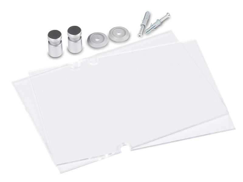 Popis:Elegantní bezrámová dveřní cedulka A6 105 x 148 mm Informační dveřní tabulka určená pro vnitřní použití jako ideální řešení orientačního systému a označení. Skládá se ze dvou desek vyrobených z průhledného plexiskla. Na krátkých stranách desky jsou umístěny dekorativní šrouby z nerezové oceli proelegantní a moderní vzhled a bezpečné uložení informací. Existuje možnost zavěšení desky jak vertikálně, tak horizontálně. Snadné a rychlé sestavení. Při použití čiré fólie pro laserové tiskárny např. Folex BG 72 lze docílit zcela transparentního efektu.Vnější rozměr: 105 x 148 mm