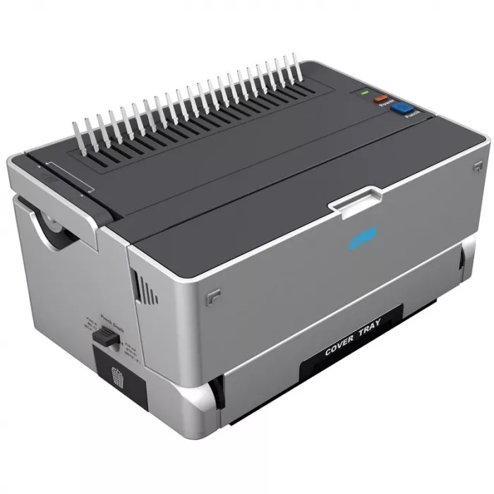 Popis:Elektrický kroužkový vazač na plastovou vazbu s vysokou mírou ergonomie. Elegantní elektrický stroj pro kroužkovou vazbu s novým originálním designem, který dbá na vysokou míru stability. Nastavitelná hloubka okraje nabízí optimální nastavení, integrované měřítko velikosti krouž doporučí správnou velikost. Praktické vlastnosti jako je složení stroje pro snadné skladování, praktické schránky na spotřební materiál. Model pro rok 2014 je osazen rychlejší razící jednotkou.Boční vystředění - anoNastavení hloubky - ano Vyřaditelné nože - ne Prosekne maximálně 2 listy předních desek