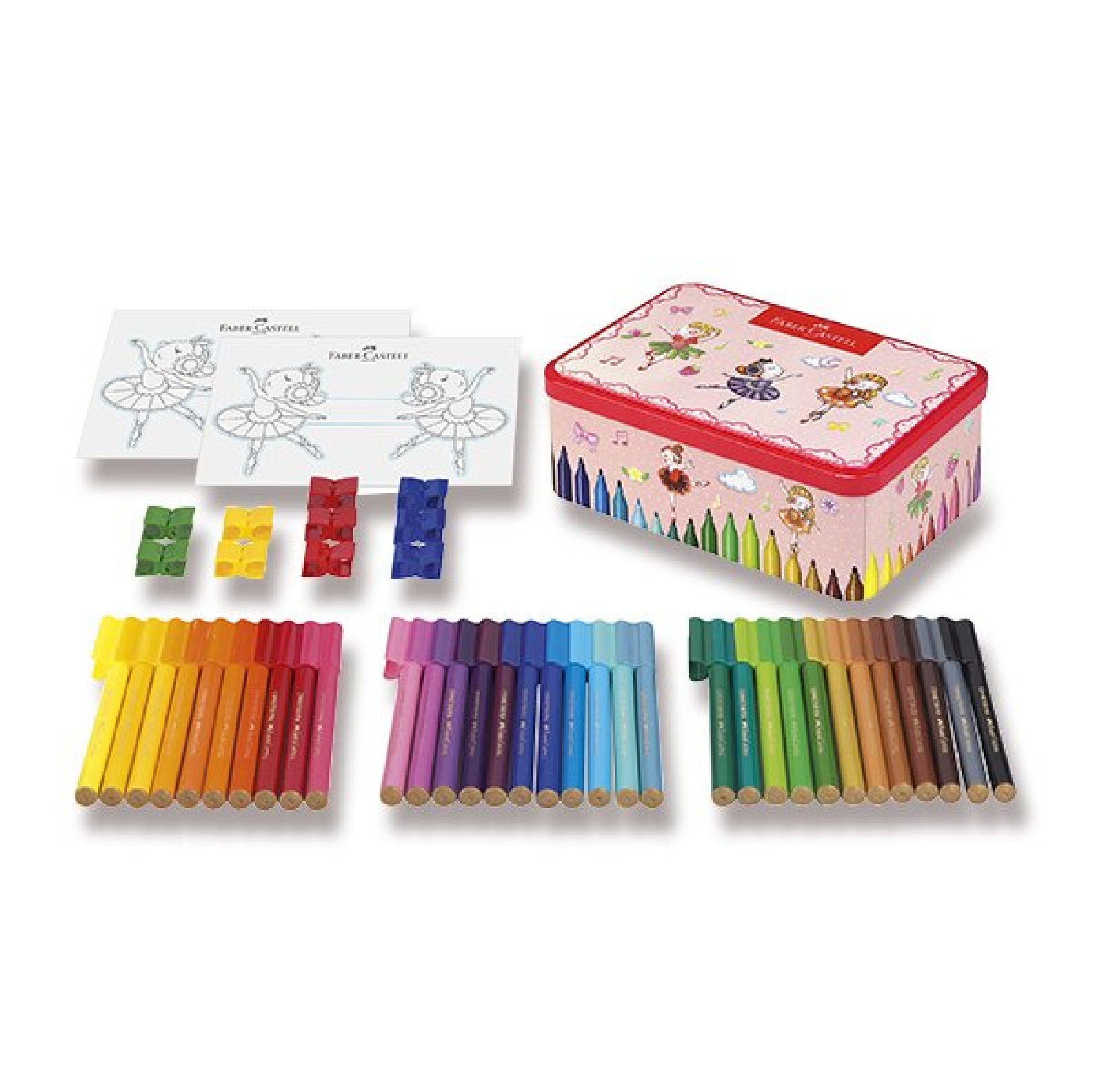 Popis:Souprava 33 kusů fixů různých barev se spojovacími klipy v dárkové plechové dóze s motivem balerínky.