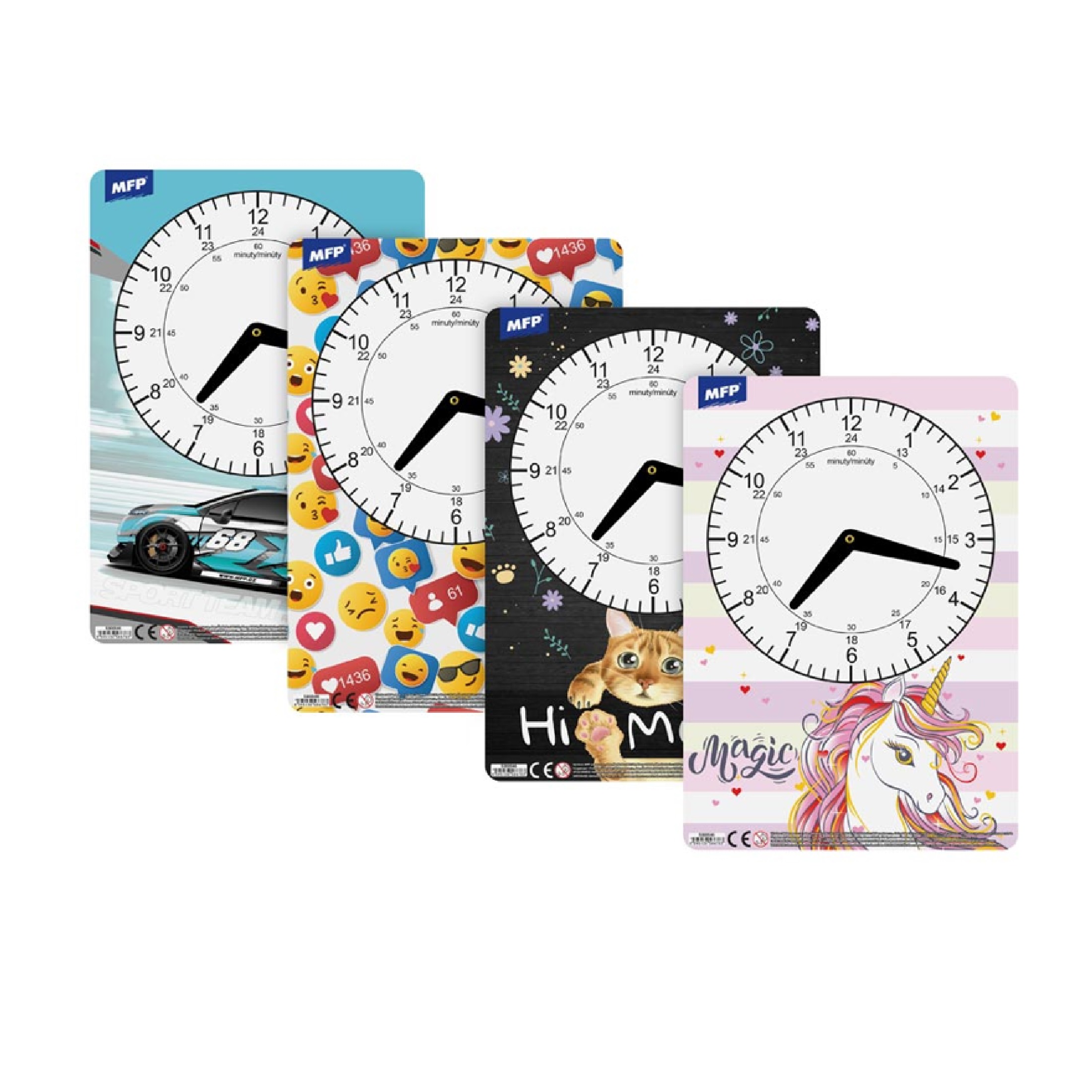 Popis:Dětské papírové hodiny s různými motivy. Didaktická pomůcka, dobře využitelná k výuce času u dětí předškolního věku nebo u prvňáčků. Tyto cvičné hodiny nesmí chybět. Vašemu dítěti při nástupu do první třídy základní školy. Upozornění: Nevhodné pro děti do 3 let. Nebezpečí vdechnutí a spolknutí malých částic.