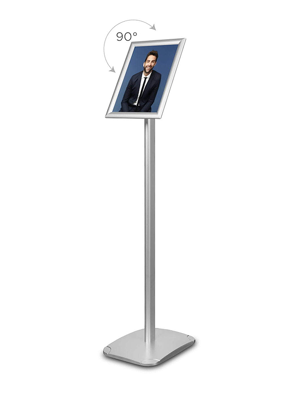 Popis:Informační stojánek A4 na stojanu 100 cm s ostrými rohy a možností prezentace na výšku i na šířku. Výjimečně stylový a vzhledově atraktivní zaklapávací rámový stojan určený pro položky jako je jídelní lístek restaurace, ukazatel směru, informační tabule atd. Výměna plakátu zabere několik sekund a funguje jako zaklapávací rámový systém. Konstrukce je vyrobena ze stylového eloxovaného hliníku. Základna je zatížena kovovou deskou s plastovým krytem, což umožňuje v případě znečištění lze základnu umýt. Prezentační plochu lze přetáčet pro preznetací na výšku či na šířku.- Velikost základny: 24 x 33 cm- Hmotnost základny: 3,70 kg- Výška stojanu: 100 cm- Celková výška: 116 cm- Rozměr produktu v balení: 7x25x100