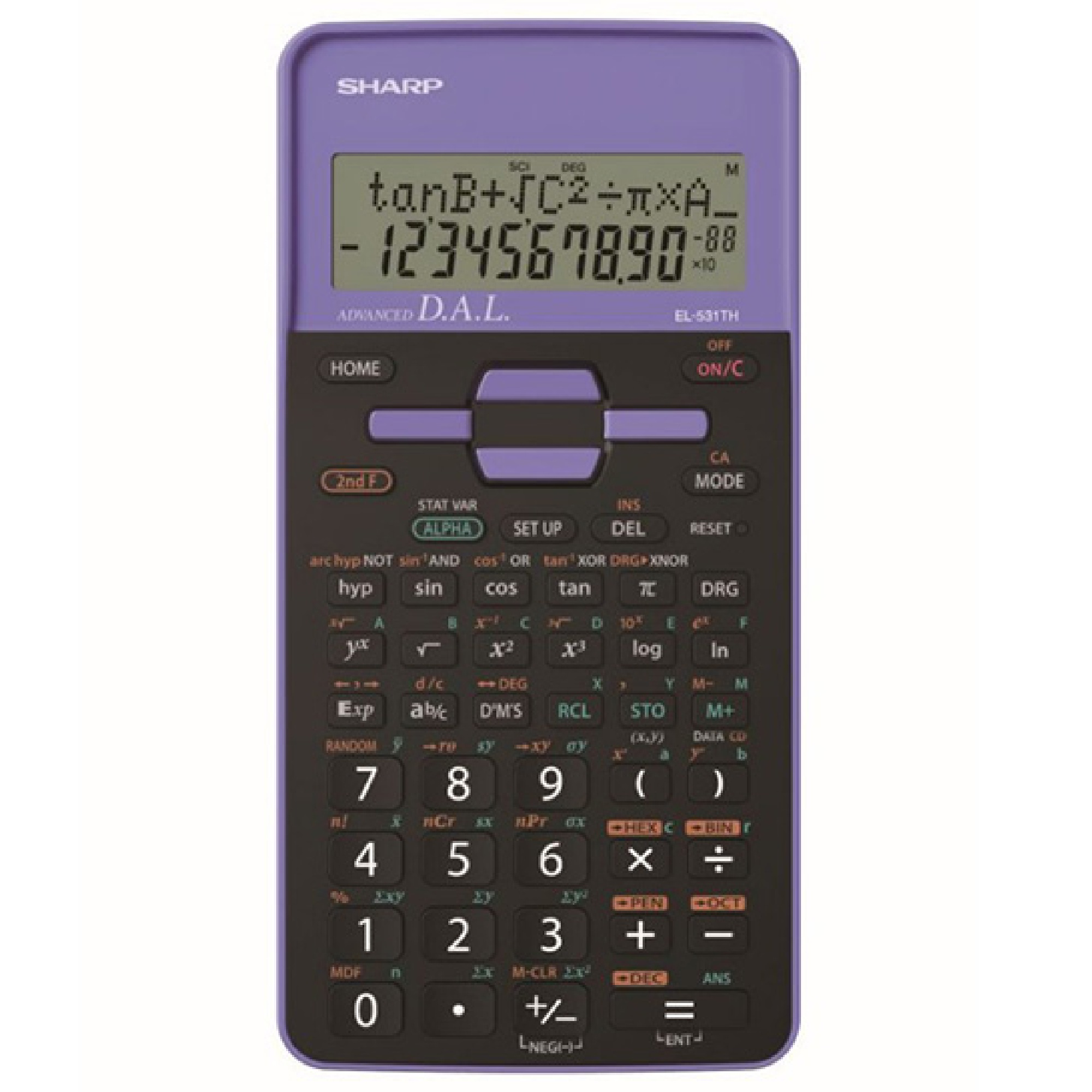 Kalkulačku SHARP EL- 31THBVL fialová můžete použít i k maturitě. Díky ní se vám povede vypočítat goniometrické, exponenciální a také logaritmické funkce, ale zároveň neupravuje, ani neřeší algebraické rovnice s proměnnou, není programovatelná, ani nemá grafický režim.