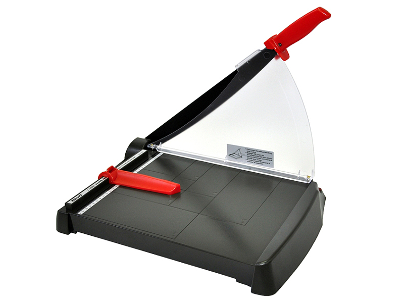 Popis:Páková řezačka A4 s novým designem. Hobby páková řezačka A4. S plastovým ochranným krytem, s plastovým stolem s vyznačenými měřítky a DIN formáty, s posuvným dorazem papíru. Délka řezu je 343 mm. Maximální kapacita 10 listů (70g/m). Vhodná pro malé kanceláře a domácnosti.