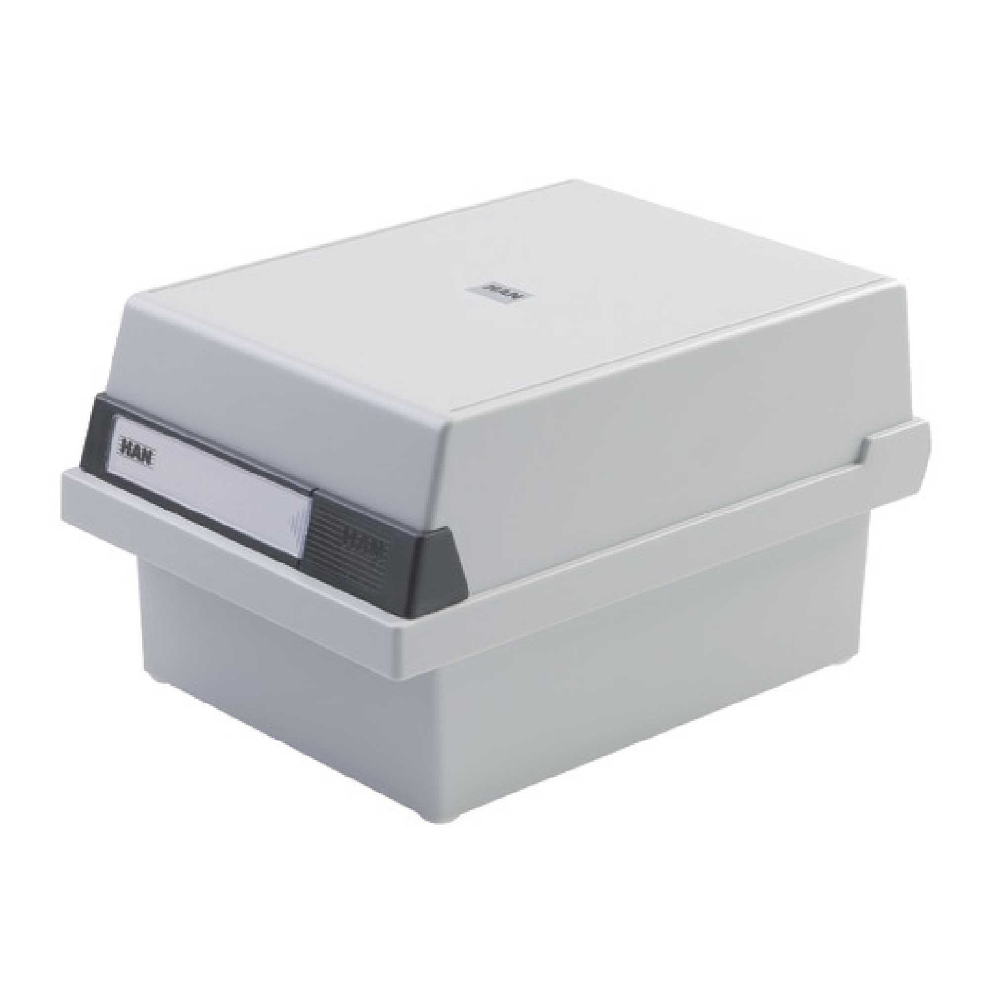 Kartotéka HAN A6 na šířku 177x140x250mm s víkem sv. šedá /E