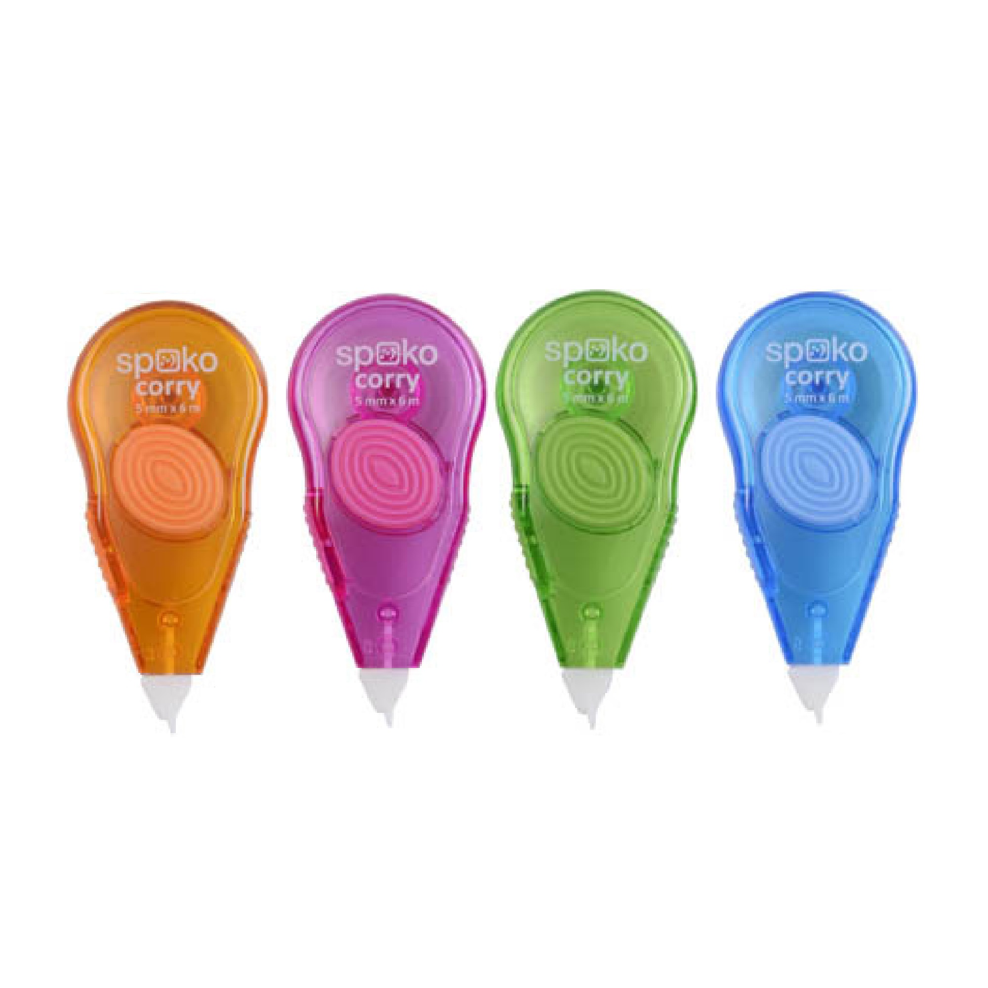 Popis:"Nejlépe si v tomto testu vedl strojek SPOKO CORRY - pod jeho bílou vrstvou nebylo z původního textu vidět vůbec nic."Korekční páska Spoko Corry dopadla v testu opravných rollerů na 1. místě.Korekční strojek Corry je vyroben v kapesní velikosti a vybaven protiskluzovými plochami pro snadnou manipulaci, možnost okamžitého přepsání, nezanechává stopy na fotokopiích, dodáváno v mixu 4 neonových barev