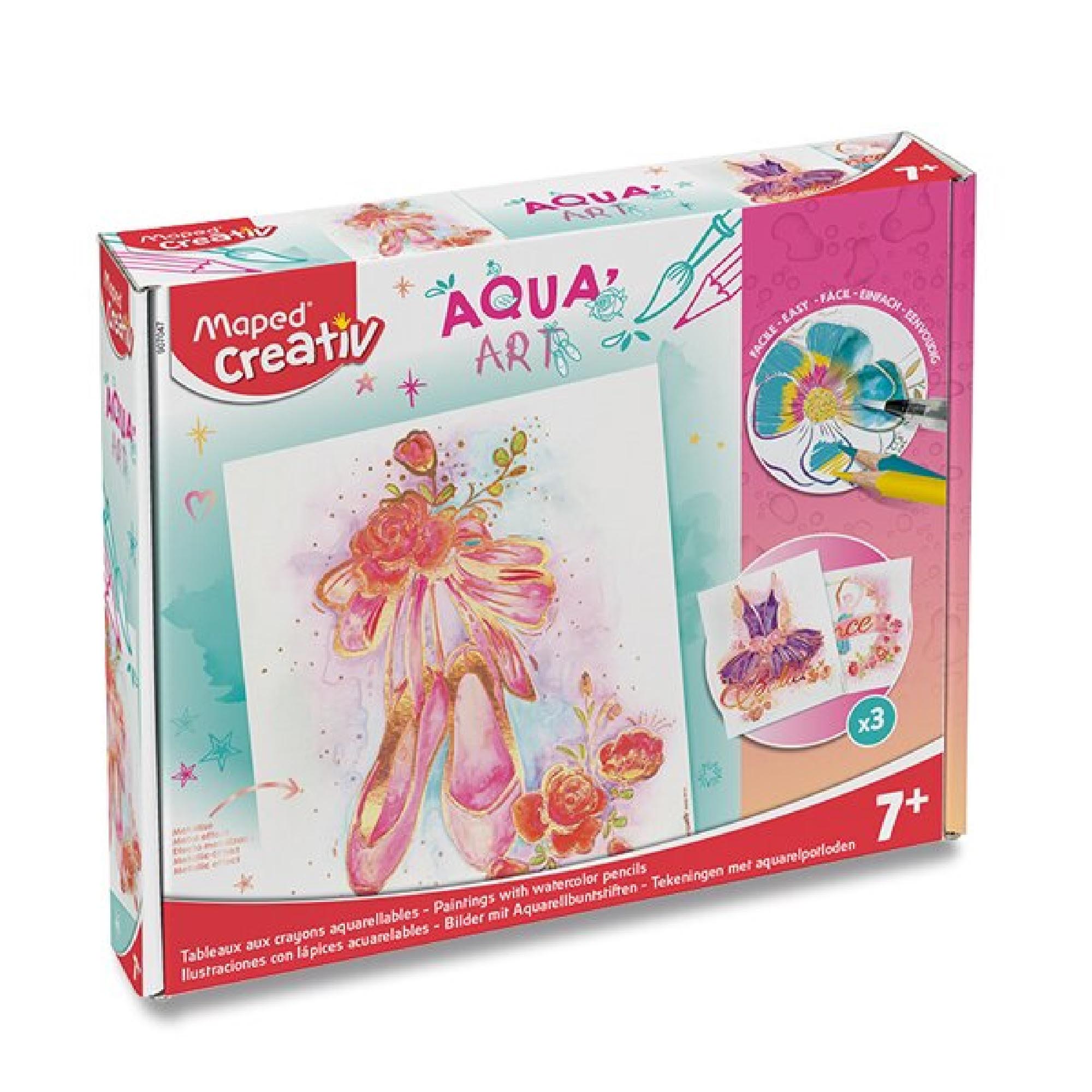Popis:Kreativní sada Maped Creative Aqua´Art Dance je ideální pro tvorbu obrázků s „efektem akvarelu“. Metalizované obrázky k vybarvení a následné úpravě štětcem pro jedinečný „akvarelový efekt“. Metalické obrysy zabrání nechtěnému přetažení barvou.