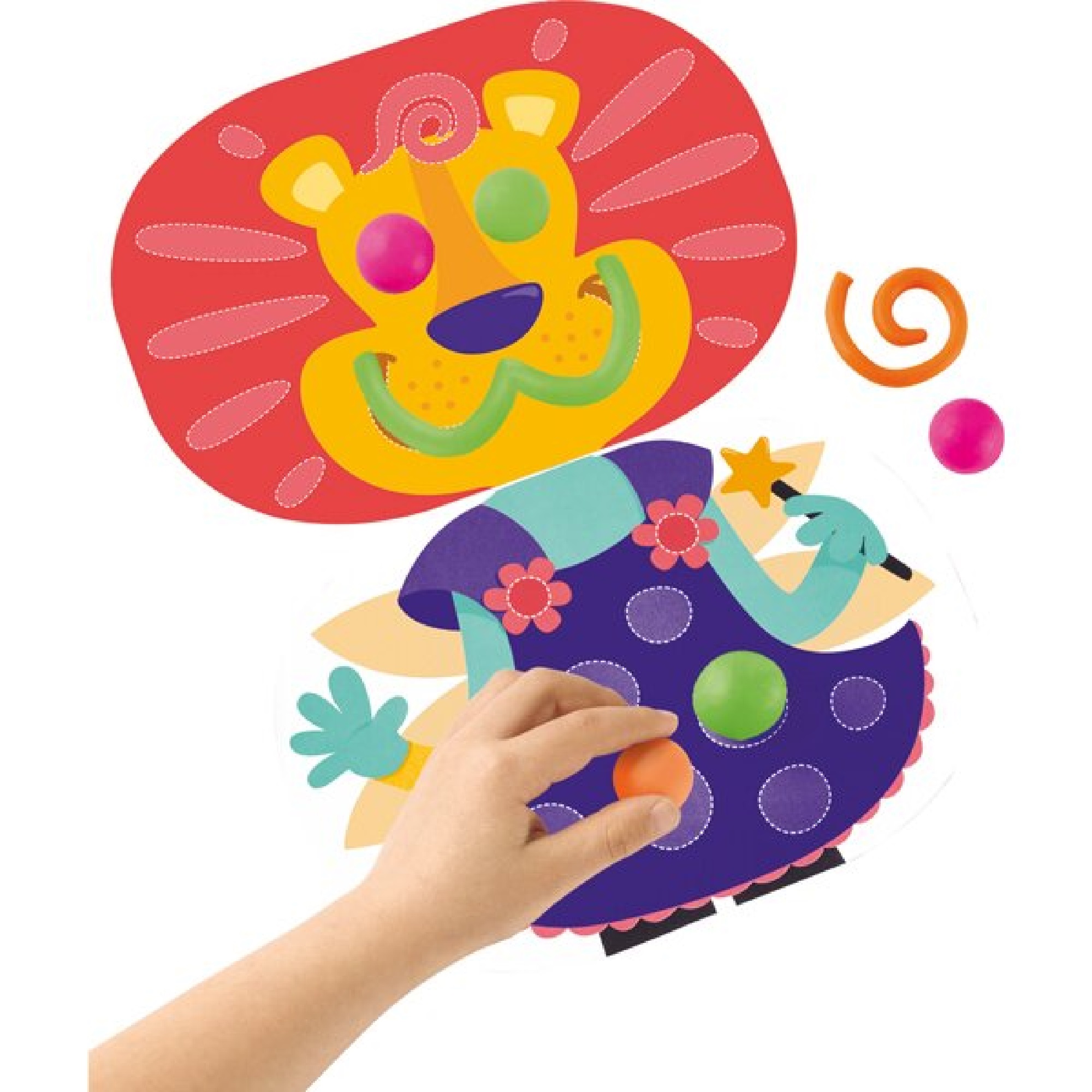 Dětská kreativní souprava Můj první modelovací set obsahuje 3 barevné modelovací hmoty (obsah 84 g), sadu příslušenství (umělohmotný nožík, nůžky a váleček) a 3 oboustranné barevné předlohy s různými postavičkami. Postavičky lze pomocí modelíny dotvářet a domalovávat dle svých představ. Sada je v praktickém kufříku, který snadno otevřou i malé děti.