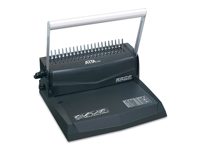 Popis:Elegantní kancelářský stroj pro vázání dokumentů do plastových hřbetů s kapacitou 20 listů. Je vybaven oddělenými pákami pro děrování a roztažení kroužku. Najednou prosekne až 20 listů (21 otvorů) a sváže 450 listů 80 g papíru. Nastavitelný postranní doraz pro nastavení přesného vycentrování. Nastavitelná hloubka prosekávání pro optimální výsek dle síly dokumentu.Snadno vysypatelná odpadní zásuvka.