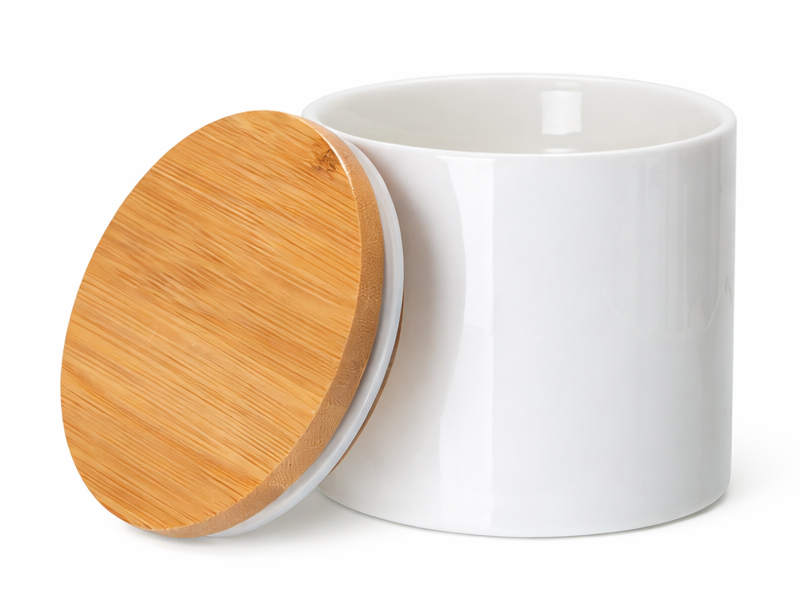 Popis:Potisknutelná kuchyňská dóza s bambusovým víčkem 400 ml Tyto sublimační keramické dózy na potraviny jsou ideální pro každého kreativního gurmána, který miluje personalizované nádoby na uchovávání svých oblíbených receptů. Nejenže jsou praktické, hygienické a snadno se používají, ale zároveň mohou sloužit jako krásná personalizovaná kuchyňská dekorace. Stačí je opatřit potiskem s libovolným oblíbeným designem a dodat tak kuchyni osobitý styl.VYSOKÁ KVALITA – NEW BONE KOSTNÍ PORCELÁNTato kolekce keramických kuchyňských dóz je vyrobena z vysoce kvalitního kostního porcelánu. Vyznačuje se elegantní slonovinově bílou barvou typickou pro tento typ keramiky a má hladký, lesklý povrch, který vypadá na kuchyňské lince opravdu krásně.VZDUCHOTĚSNÉ BAMBUSOVÉ VÍKOSublimační keramické dózy jsou vybaveny vzduchotěsným bambusovým víkem s gumovým těsněním. To účinně chrání koření a potraviny uvnitř před vlhkostí a prachem. Bambus je navíc antibakteriální materiál a nezpůsobuje nežádoucí pachy.3 VELIKOSTI PRO RŮZNÉ POTŘEBY SKLADOVÁNÍKeramické kuchyňské dózy jsou dostupné ve třech velikostech, aby vyhověly různým potřebám skladování. Jsou ideální pro bylinky a koření, ale také pro cukr, sušenky nebo jiné potraviny. Díky jednotnému designu spolu dokonale ladí a vytvářejí elegantní sadu dóz pro moderní kuchyně.PERFEKTNÍ PERSONALIZOVANÉ KERAMICKÉ DÓZYNaše sublimační keramické dózy umožňují vytvořit dokonalé personalizované kuchyňské nádoby. Rovné stěny jsou ideální pro velkoformátový celoplošný potisk a prémiový povrch ORCA Coating zajišťuje syté barvy a dlouhou životnost motivu. Tyto dózy jsou skvělou volbou jak do vlastní kuchyně, tak jako originální dárek např. ke kolaudaci.Specifikace Materiál: kostní porcelán a bambus Barva: bílá Objem: 400 ml Rozměry (V × O): 8,5 × 9,7 cm Tisková plocha: 30 × 8,5 cm (400 ml) Způsob ohřevu: hrnkový lis, cca 180 °C po dobu 15 sekund