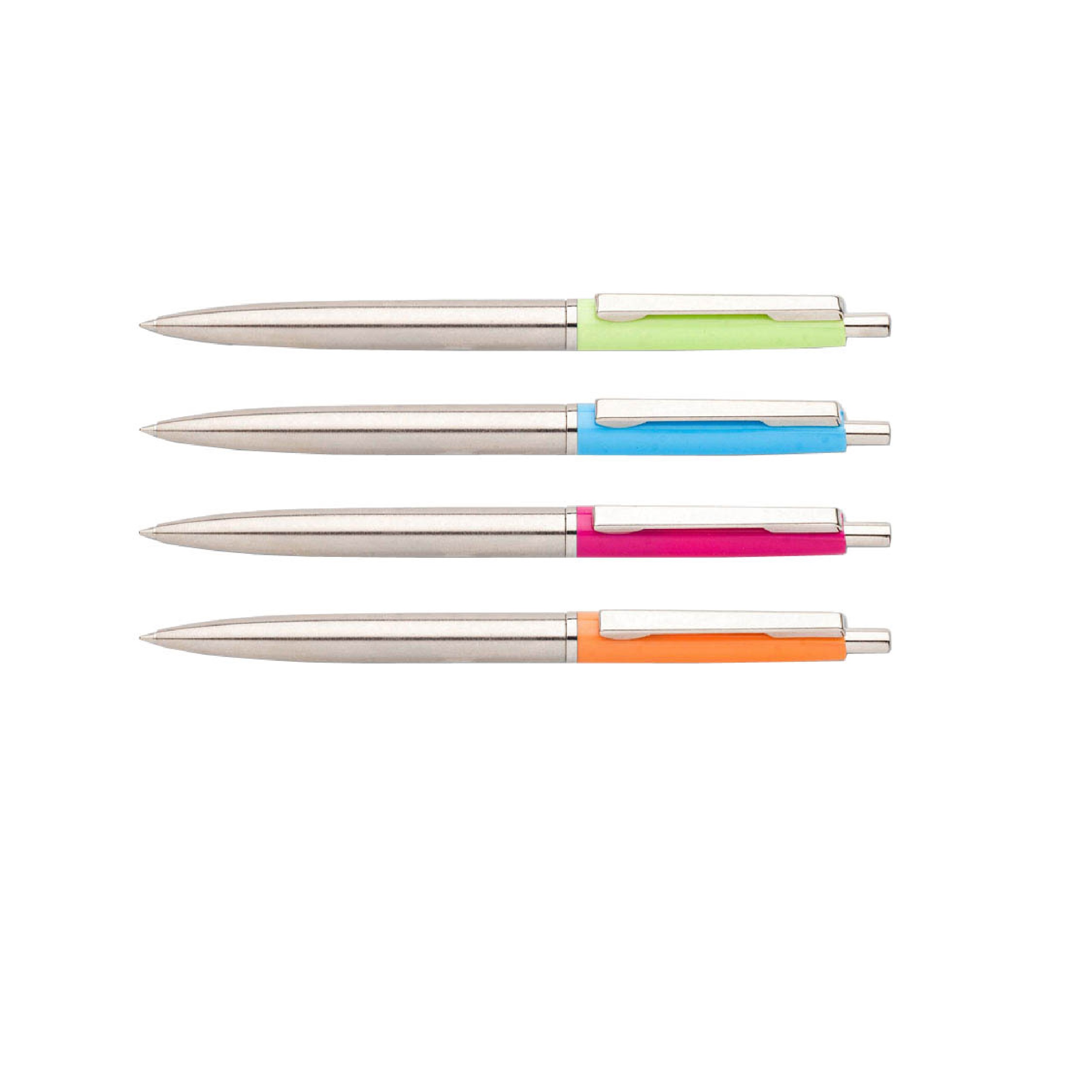 Popis:Kuličkové pero s kovovým tělem v úchopové části