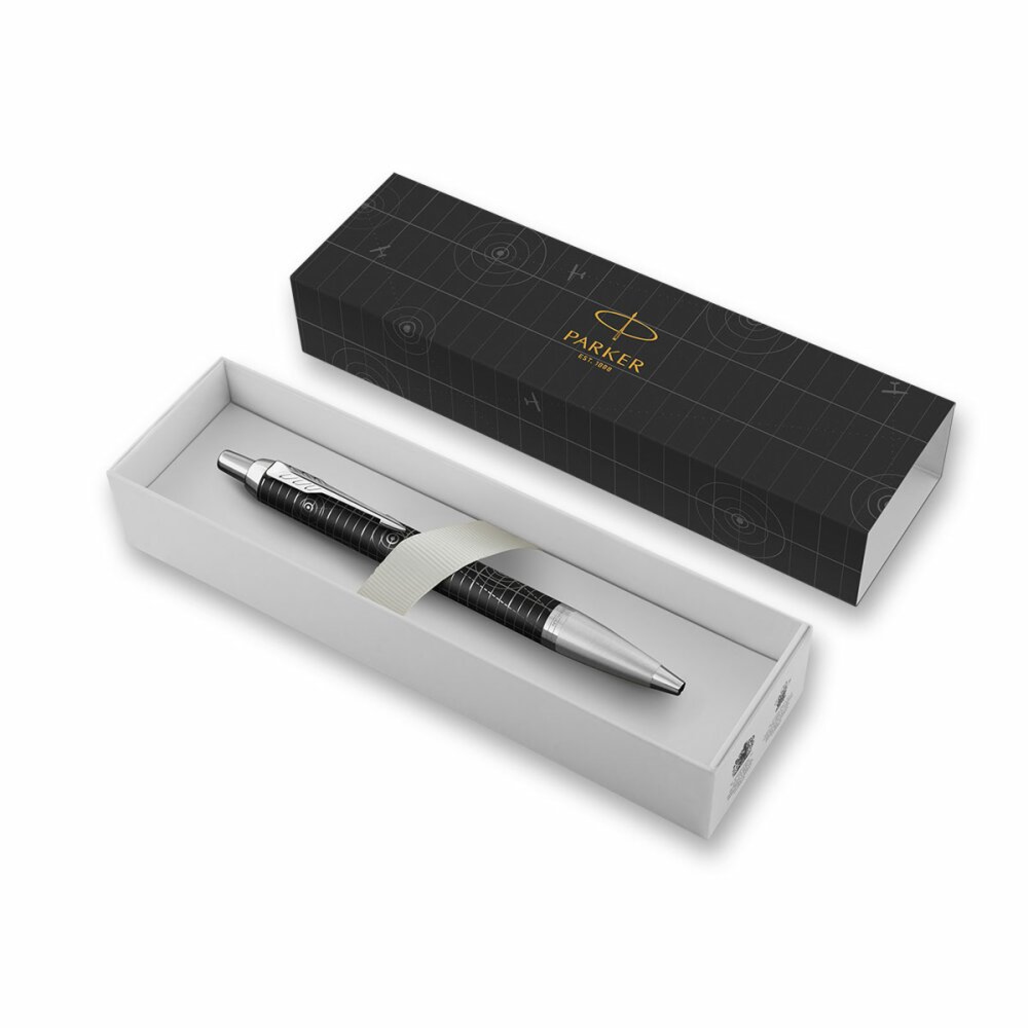 Kuličkové pero Parker IM Premium Legacy of Flight CT má tělo z nerezové oceli pokryté matným černým lakem a úchopovou část z broušené nerezové oceli.
