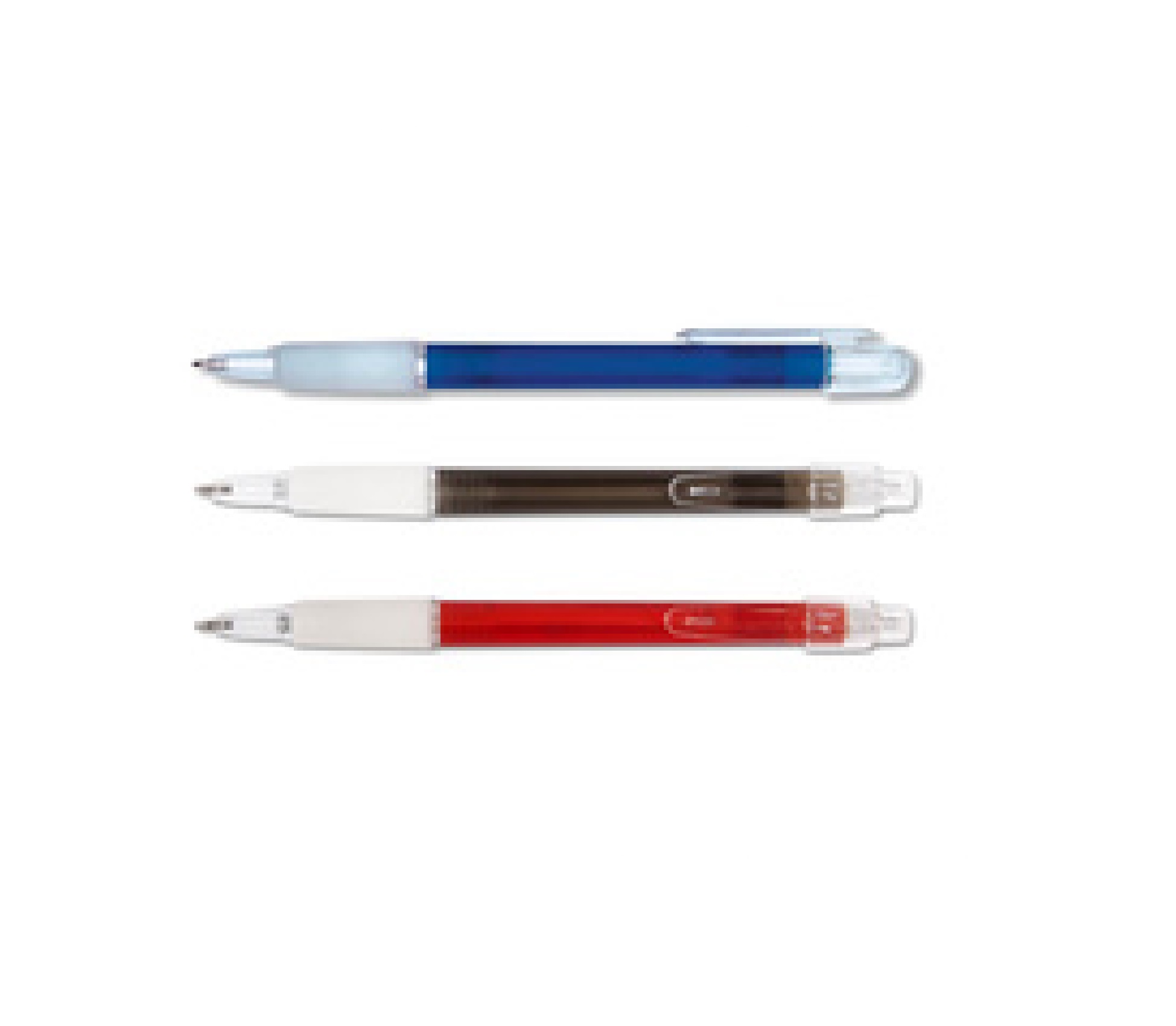 Popis:Plastové kuličkové pero s barevným tělem, pogumovaná dolní úchopová část těla pro komfortnější držení