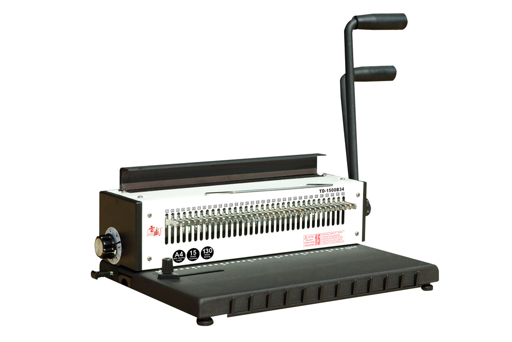 Popis:Robustní vazač na drátěnou vazbu 3:1 s kapacitou 15 listů Uživatelsky vysoce přívětivý vázací a děrovací stroj s perforací 3/1". (34 ok na formátu A4 - 297 mm)Určen pro vazbu do kovových hřbetů v rozsahu průměru (5,5 mm - 16 mm). Stroj je vhodný pro vazbu svazků do cca 130 listů. Optimální pro kancelářské užití při výrobě ceníků, prezentací atp. Ideální pro výrobu kalendářů díky vyřaditelným segmentům.- kapacita děrování na jeden cyklus až 15 listů 80g papíru- vazba do průměru hřbetu až 16 mm tj. 130 listů- volitelná vzdálenost děr od okraje listu- počet děrovacích nožů 34, děruje otvory 4 x 4 mm- Stroj disponuje otevřenými bočnicemi a díky tomu lze vázat i formáty větší, než A4