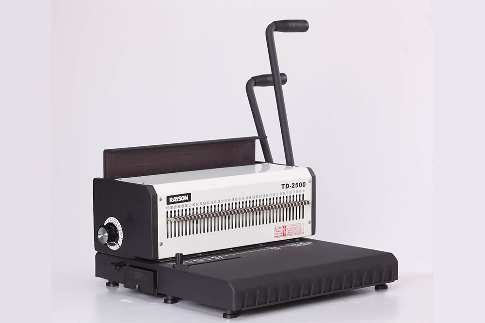 Popis:Robustní manuální vazač na drátěnou vazbu 3:1. Vysoce kvalitní vázací a děrovací stroj s perforací 3/1". Určen pro vazbu dokumentů do kovových hřbetů s roztečí ok 3/1" (4,8 mm – 16 mm). Vhodný pro vazbu svazků do cca 200 listů. Kapacita děrování na jeden cyklus do 25 listů 80g papíru. Děruje hranaté otvory 4×4 mm. Nastavitelná vzdálenost děr od okraje listu, vyřaditelné všechny děrovací nože. Má uživatelsky přívětivý design se dvěma úchyty, které zvyšují účinnost vazby. Tento model je také vybaven čtyřpolohovým nastavitelným okrajem hloubky a držákem drátu, který usnadňuje vkládání dokumentu. Díky mohutné kovové konstrukci je stroj vhodný i pro větší zatížení. Možnost vyřazení libovolného děrovacího nože umožňuje snadnou změnu formátu nebo vynechání výseku pro palcový výsek na kalendáře.- Stroj disponuje otevřenými bočnicemi a díky tomu lze vázat i formáty větší, než A4
