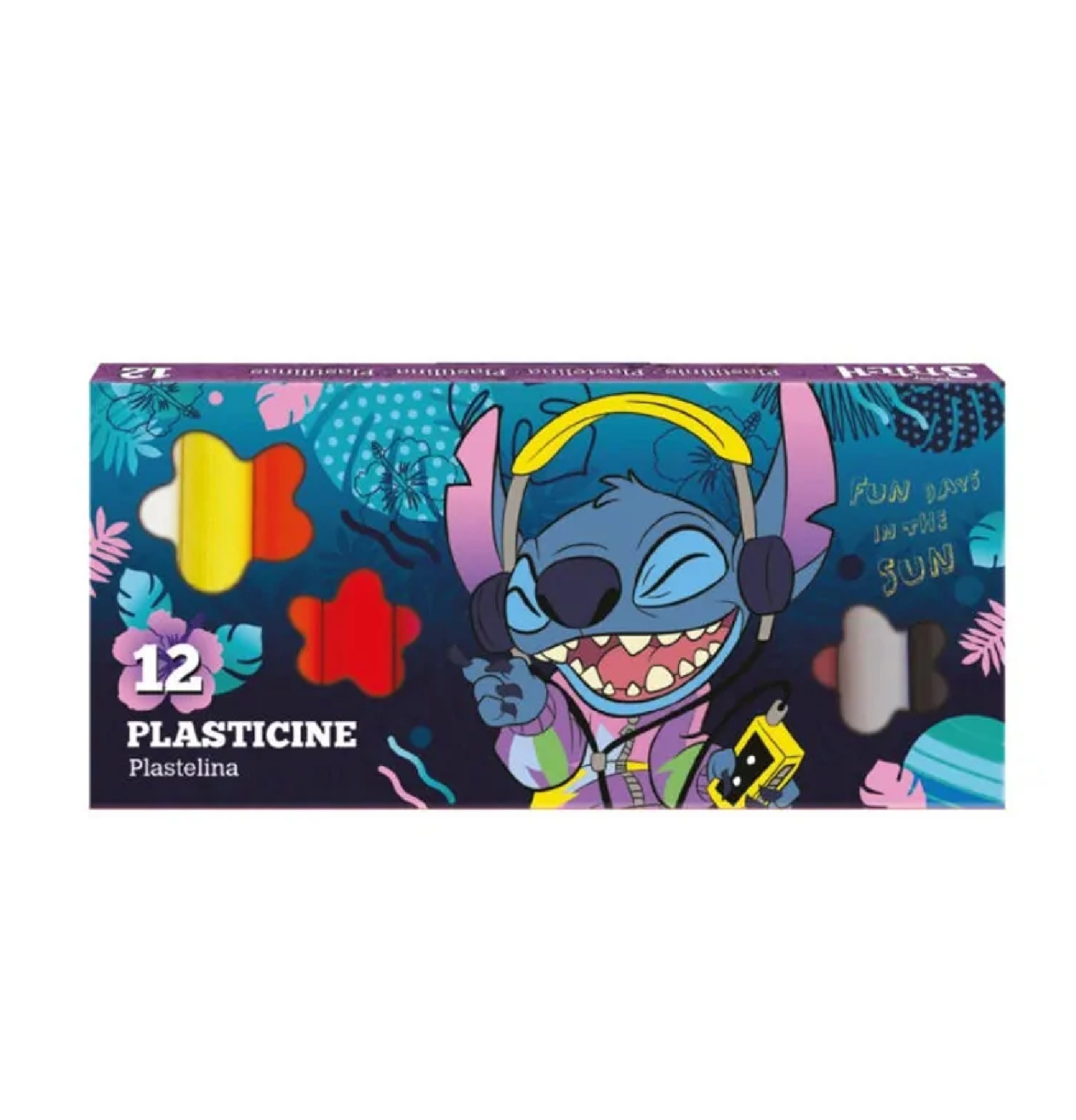 Modelína 12 barev v krabičce s motivem Stitch, vlastnosti produktu: - kvalitní plastová hmota - široká škála barev - živé, syté barvy - nešpiní ruce - nevysychá na vzduchu - nelepí se na podklad - pružné, snadno modelovatelné - vhodné od 3 let.