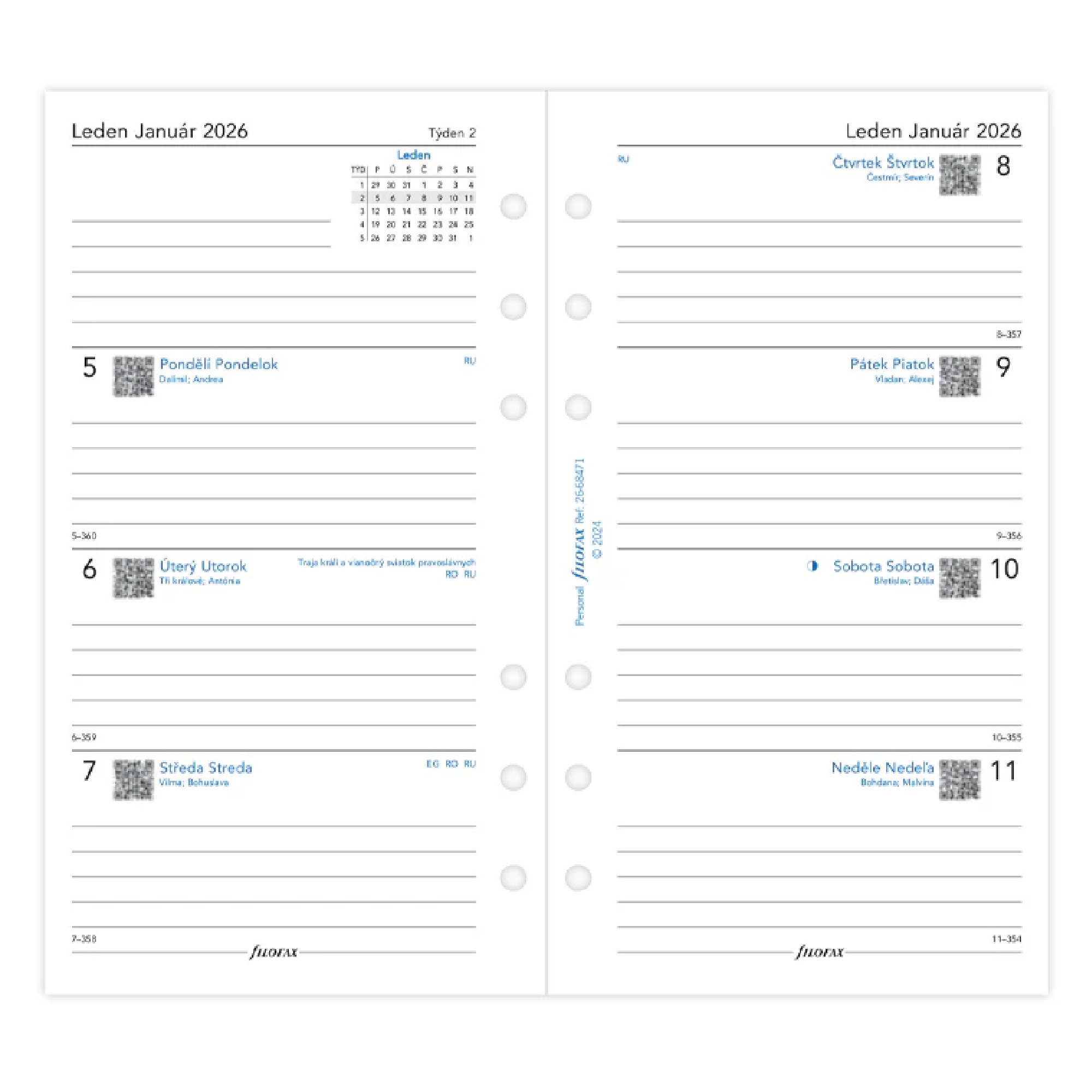 Popis:Filofax, Kalendář 2026 osobní, týden/2 strany, linky, ČJ + SJ