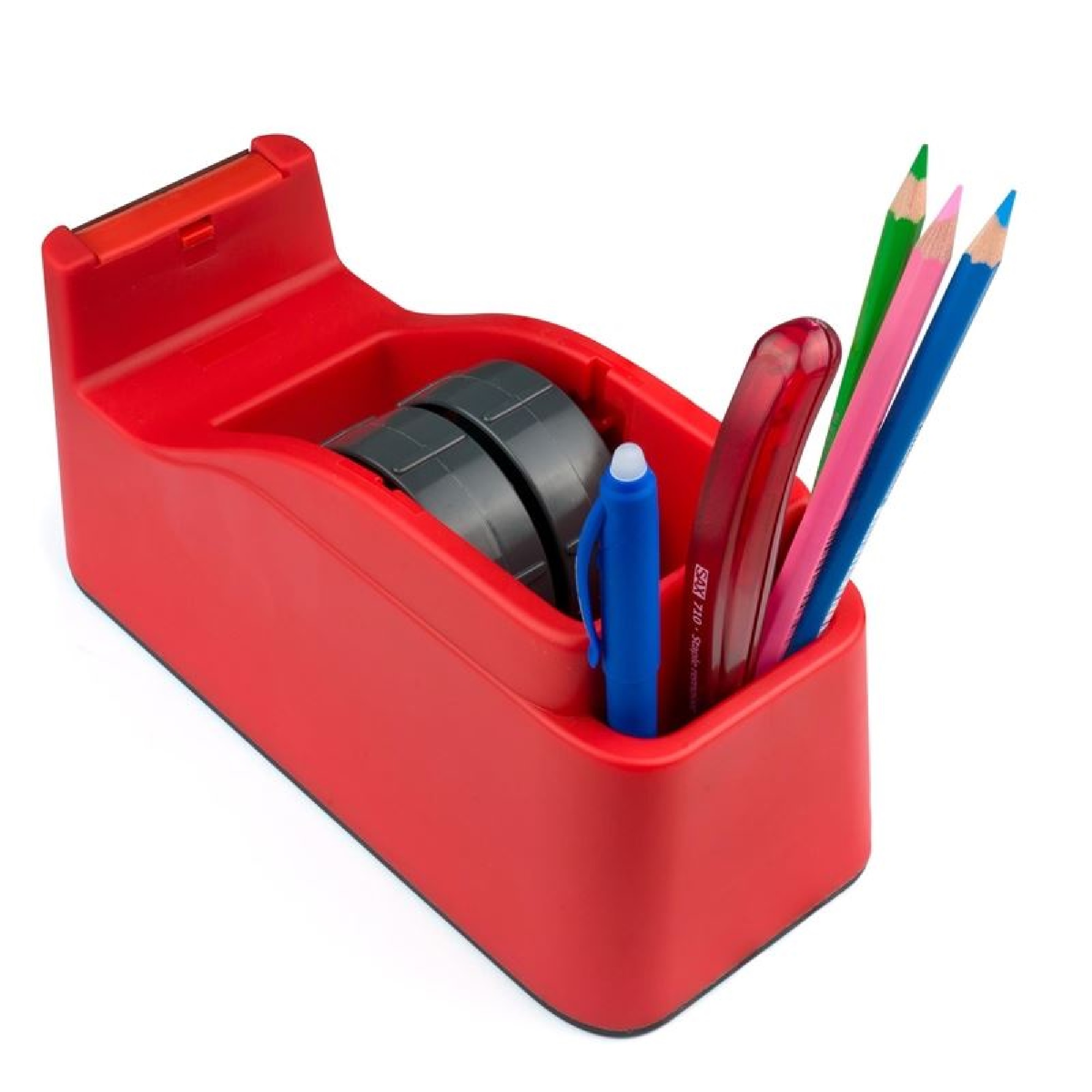 Zadní část odvíječe slouží jako stojánek na psací potřeby, nůžky, nůž či pravítko. Možnost volby ze dvou výškových úrovní zapuštění pásky do odvíječe