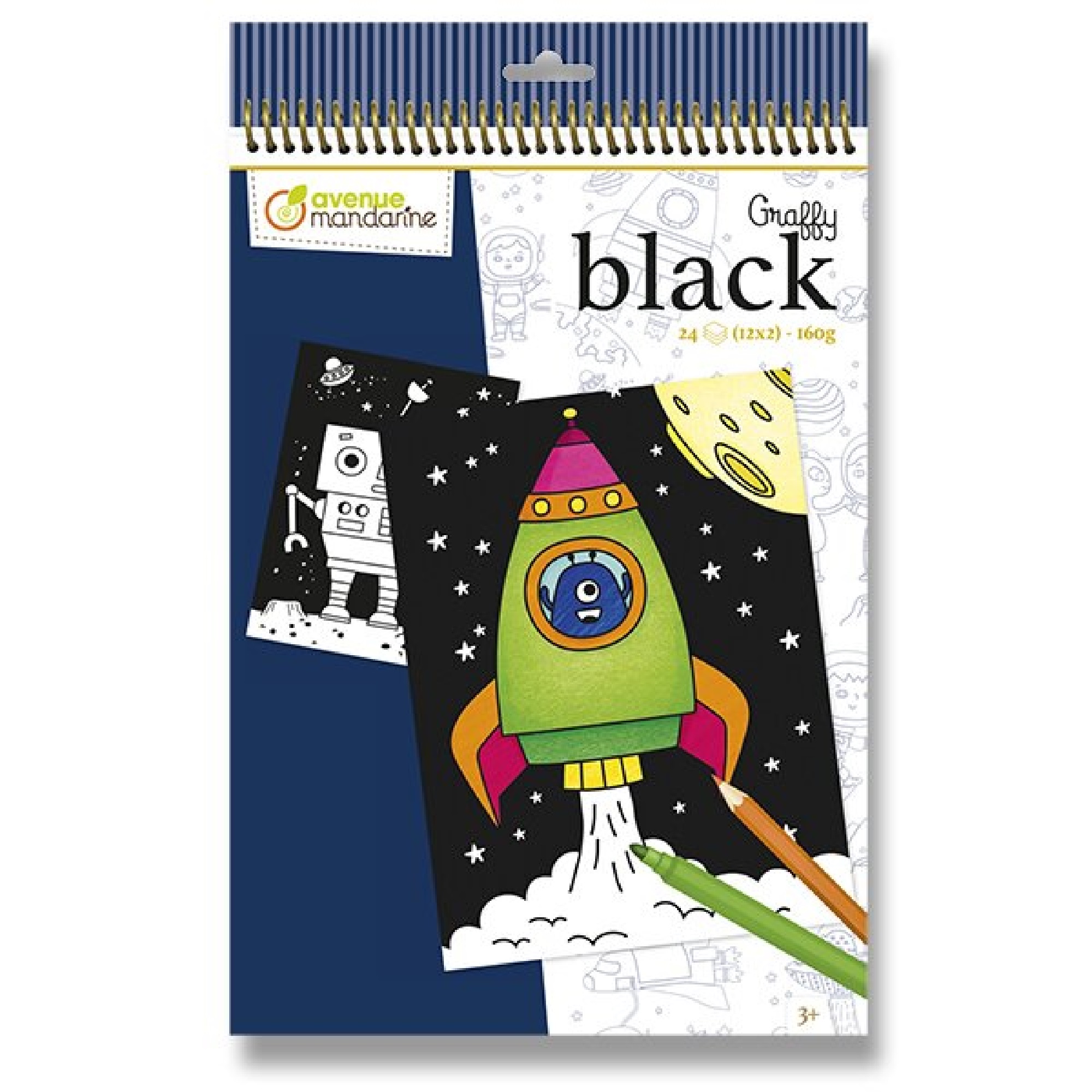 Popis:Omalovánky Avenue Mandarine Graffy Black ve velkém formátu s motivem vesmíru. Černá podkladová barva papíru skryje možné přetahování. Předřezané listy pro případné snadnější vytržení z bloku. Omalovánky obsahují 24 listů, 12 motivů po 2 ks. Gramáž 160 g.