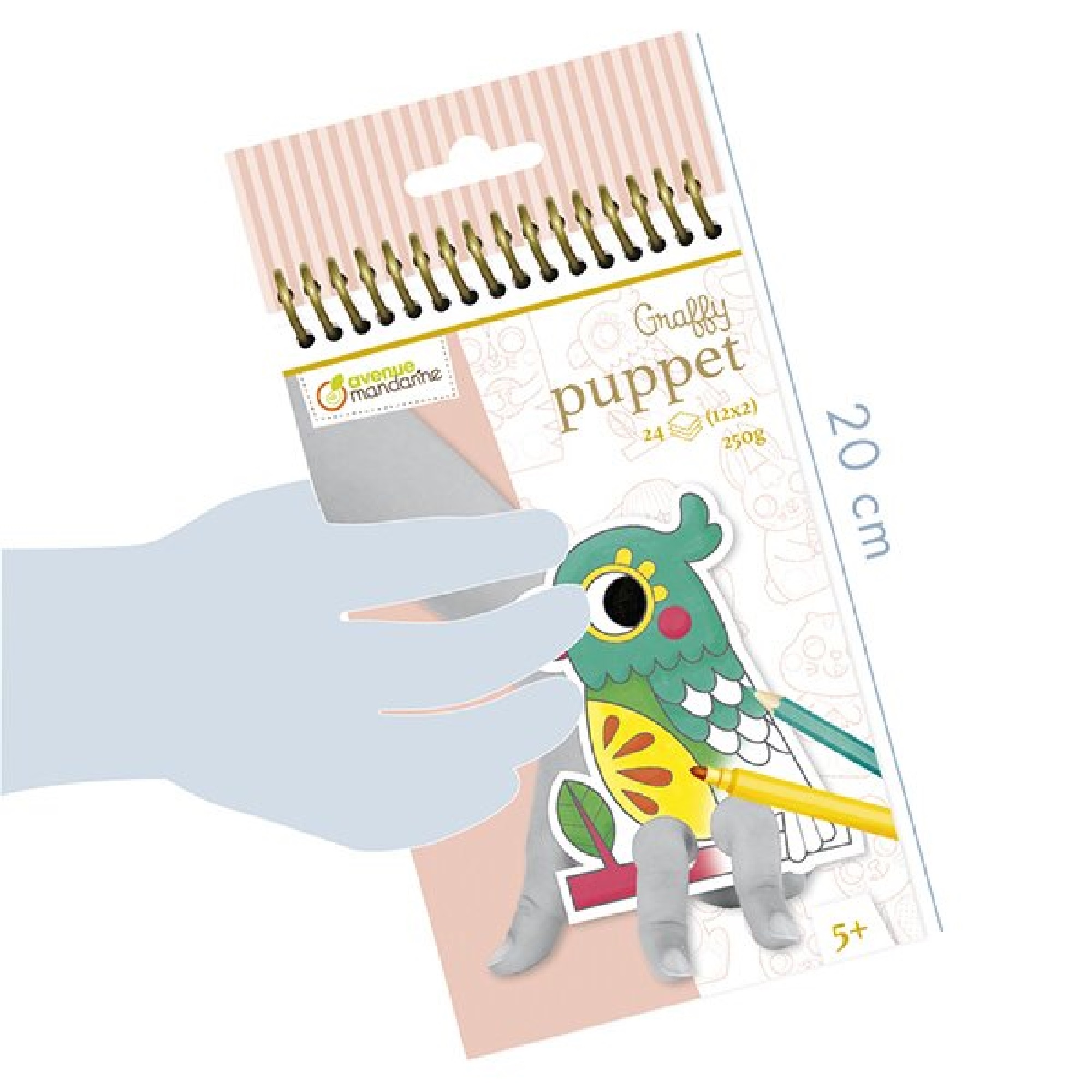 Popis:Omalovánky Avenue Mandarine Graffy Puppet s motivy domácích zvířátek. Omalovánky předem připravené a upravené pro následné použití jako prstové loutky, stačí je vybarvit a hrát si. Omalovánky obsahují 24 listů, 12 motivů po 2 ks, kroužková vazba. Lze použít na techniky: pastelky, fixy, akvarel atd.
