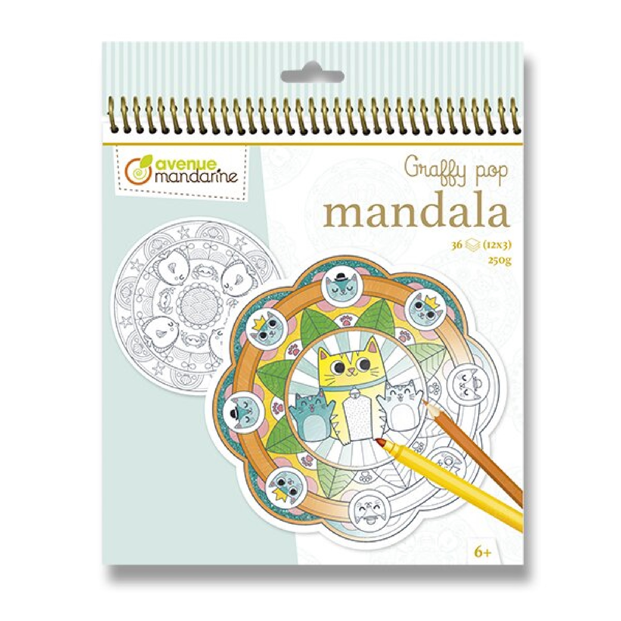 Popis:Omalovánky Avenue Mandarine Graffy Pop Mandala s předkreslenými motivy mandal se zvířaty. Omalovánky obsahují 36 listů, 12 motivů po 3 ks. Gramáž 250 g.