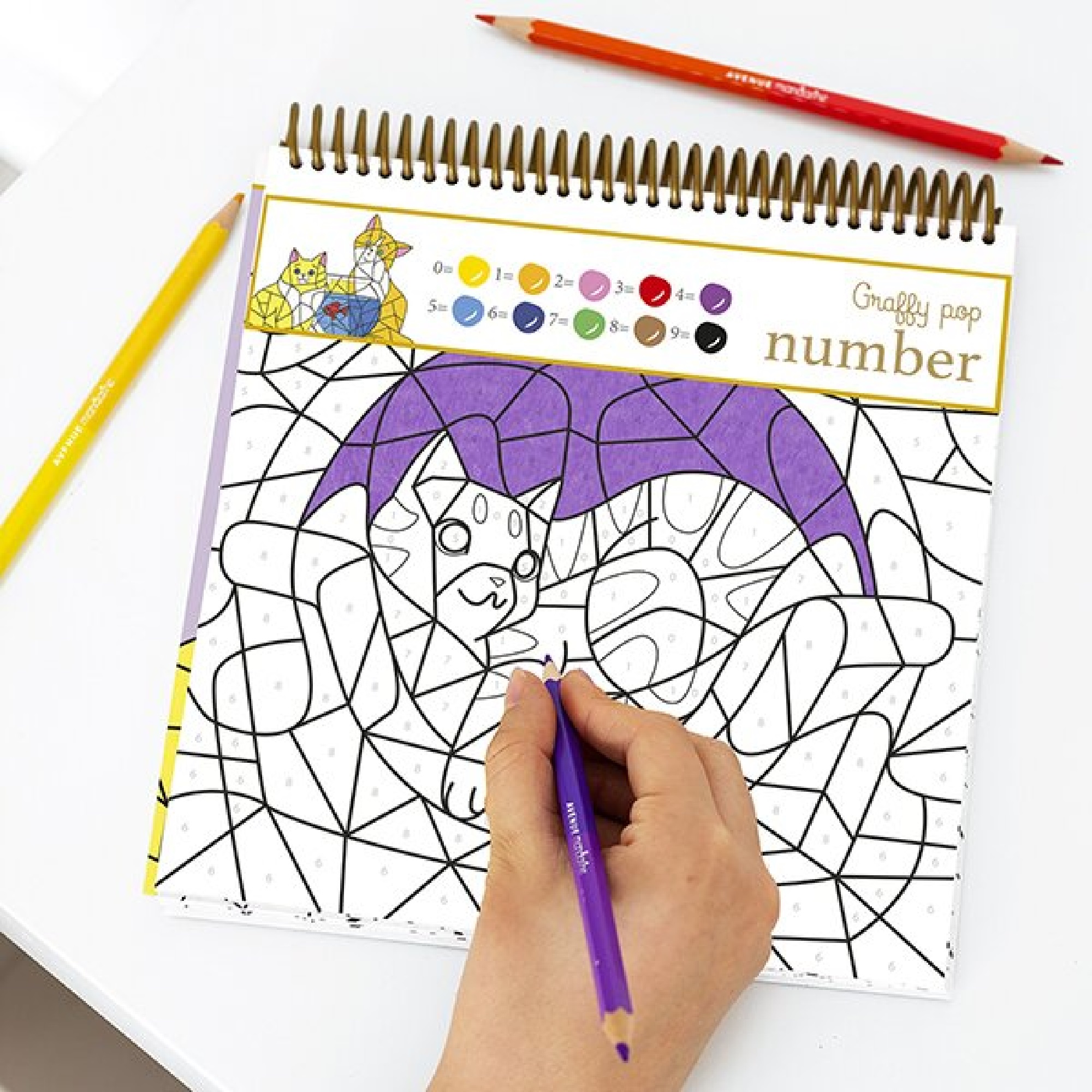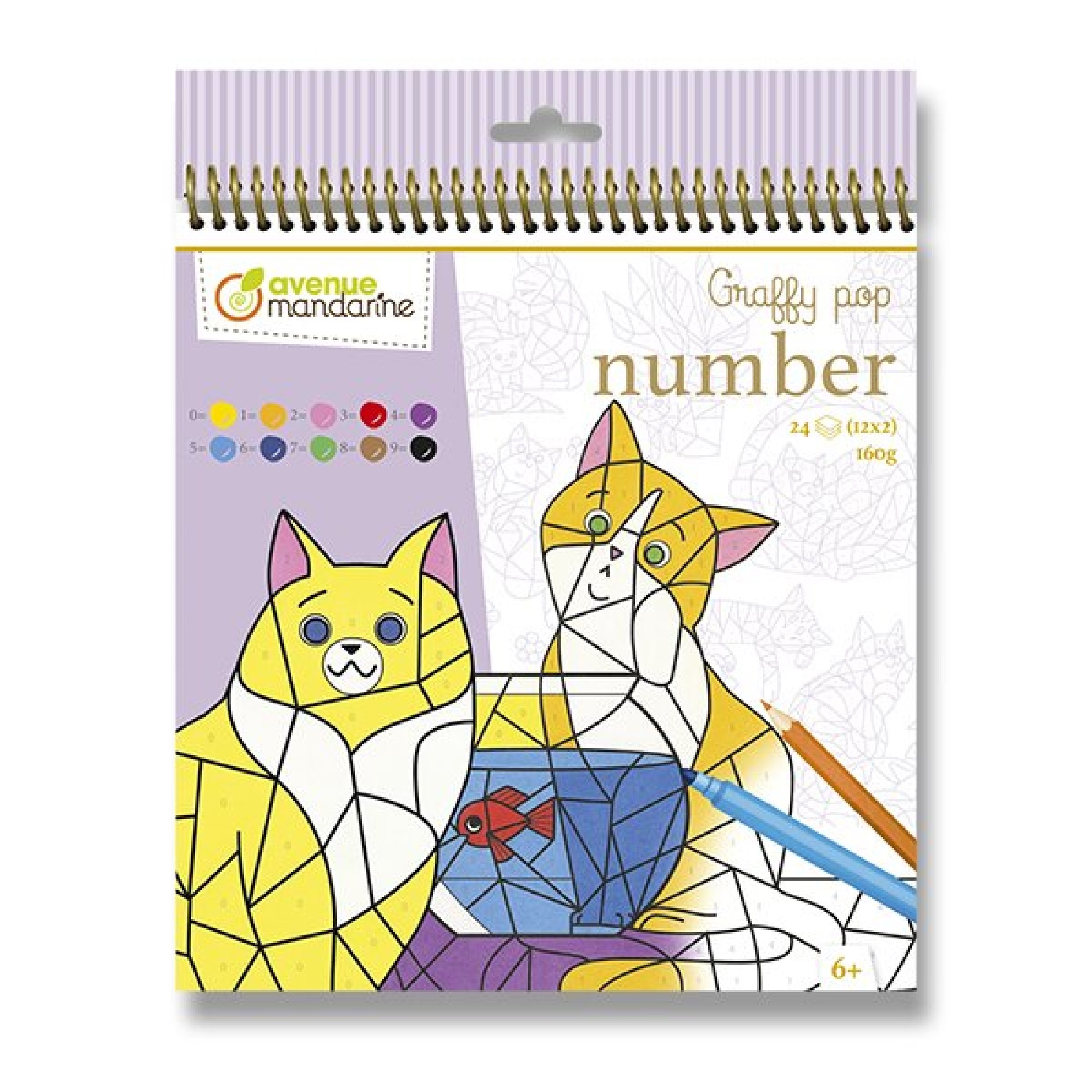Popis:Omalovánky Avenue Mandarine Graffy Pop Number s motivy kočiček určené k vybarvení pomocí čísel. Každá jednotlivá barva je spojena s daným číslem od 0 do 9. Ideální pro procvičování jemné motoriky a učení barev. Omalovánky obsahují 24 listů, 12 motivů po 2 ks. Gramáž 160 g.