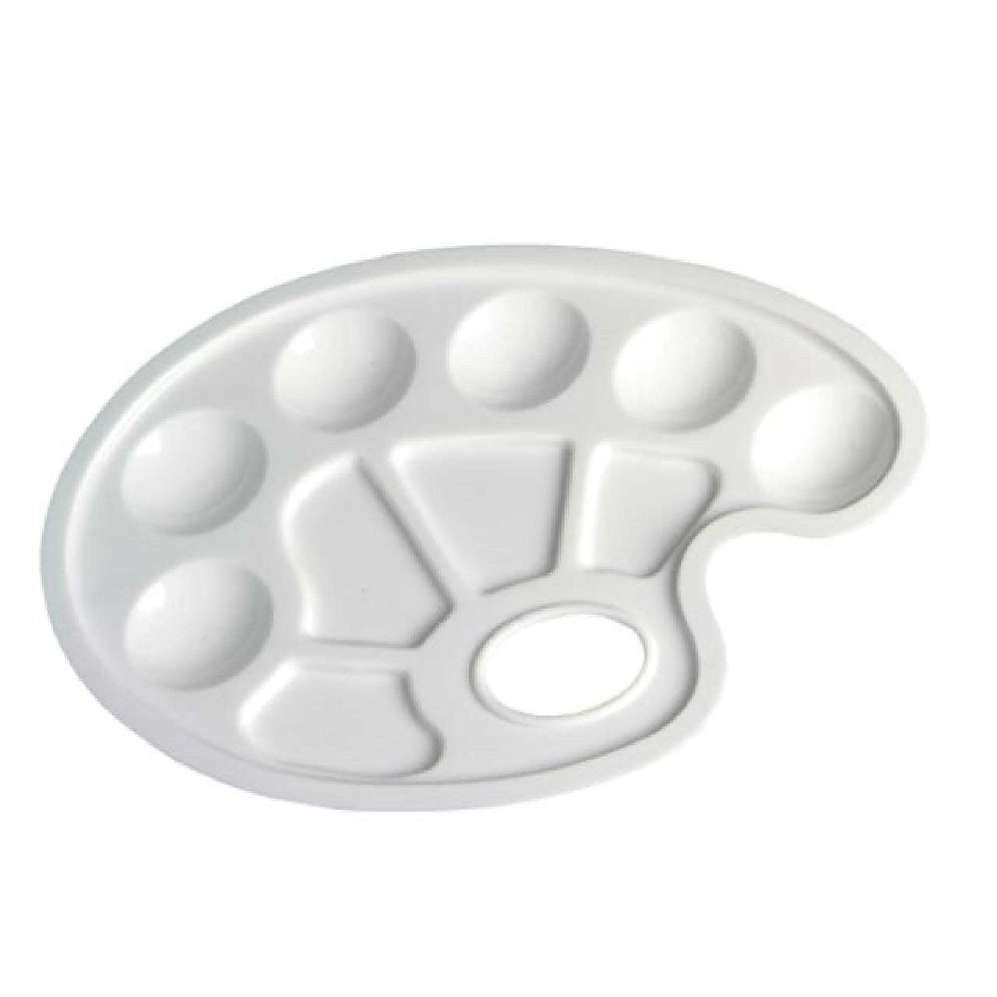 Popis:Rozměry palety: 23 cm (širší strana) x 17 cm (užší strana). Bílá malířská paleta 6 + 4 misky Bílá malířská paleta s 6-ti miskami pro barvy a 4-mi miskami pro míchání barev. Vyrobená z odolného nepraskavého plastu. Rozměry: 23 cm (širší strana) x 17 cm (užší strana). Dodávané v závěsu.