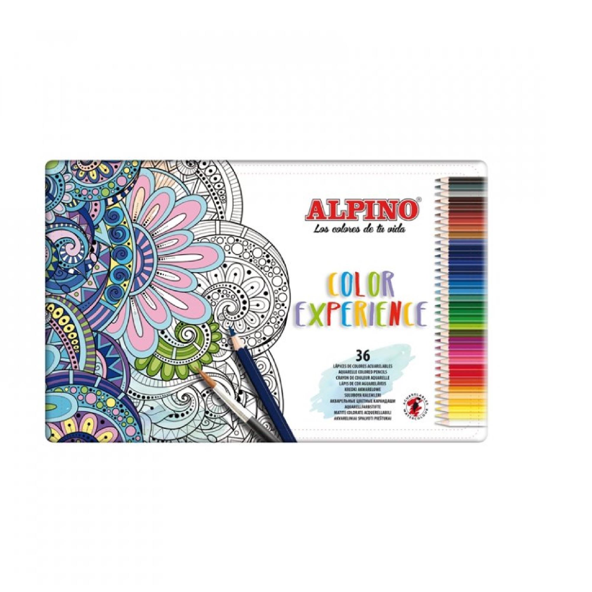 Popis: kovová krabička s 36 akvarelovými tužkami Alpino Color expereince