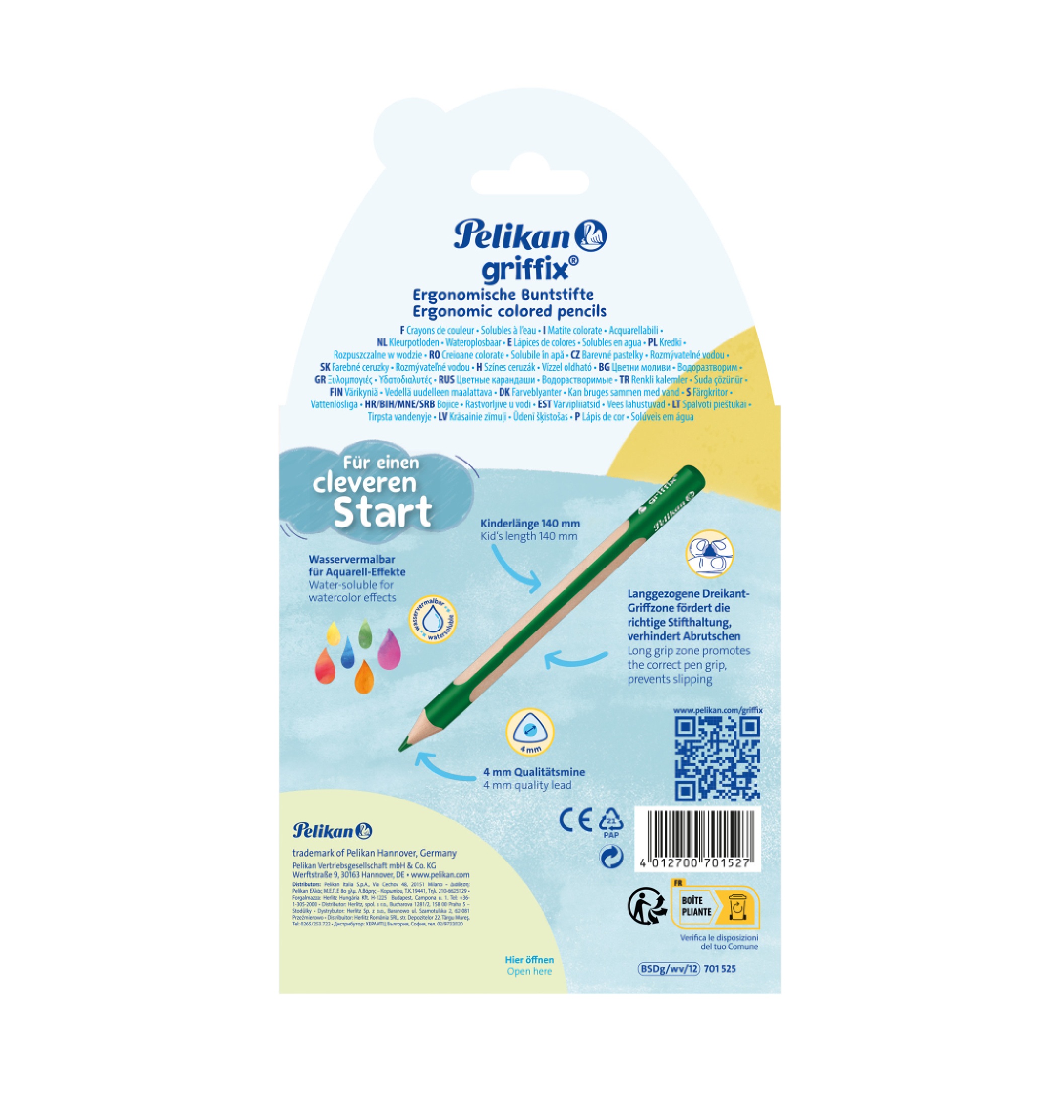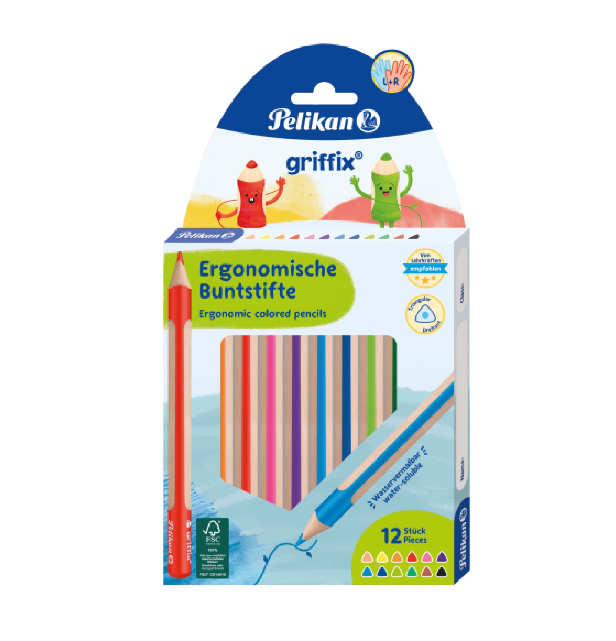 Popis:trojhranné pastelky 12 kusů, 140 mm dlouhé vhodné pro děti, 4 mm šířka tuhy, ergonomické, lesní certifikace FSC, rozpustné ve vodě,